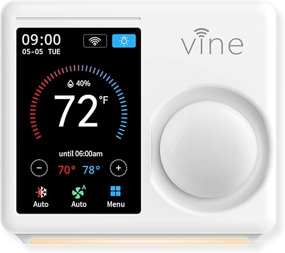 Vine TJ-610E Wi Fi 7 Day and 8 Period Programmable 5th Generation Smart Home Thermostat, Compatible with Amazon Alexa, Google Assistant, and Vine App