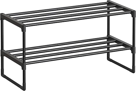 SONGMICS Shoe Rack, 2-Tier Shoe Organizer, Metal Storage Shelf, Upright or Upside Down, for 6-9 Pairs, Stackable, for Entryway, 11.8 x 26.8 x 13.2 Inches, Black ULSA202B01
