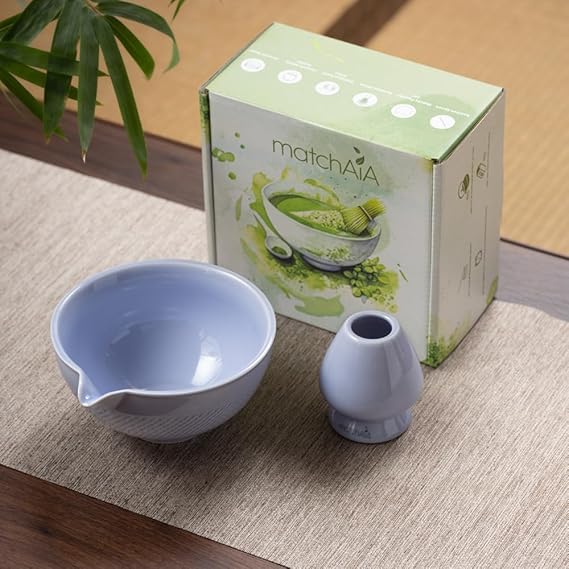 2 Pcs Matcha Set äóñ Ceramic Bowl with Spout, Matcha Whisk Holder, Premium Kit for Traditional Matcha, Modern Lattes, and Tea Ceremonies (Purple) (Whisk not included)