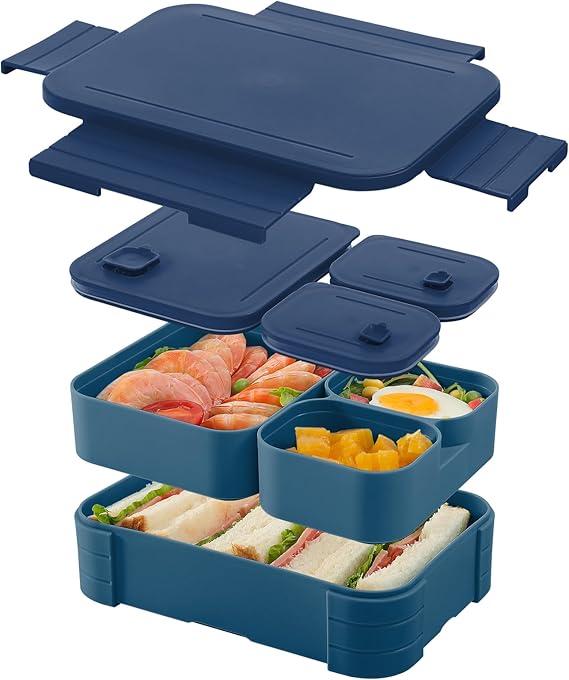 Leak Proof Bento Lunch Box for Adults äóñ BPA-Free, 3 in 1 High Capacity Bento Box, Microwave & Dishwasher Safe, Food Storage Container for Work & Travel (Navy Blue)
