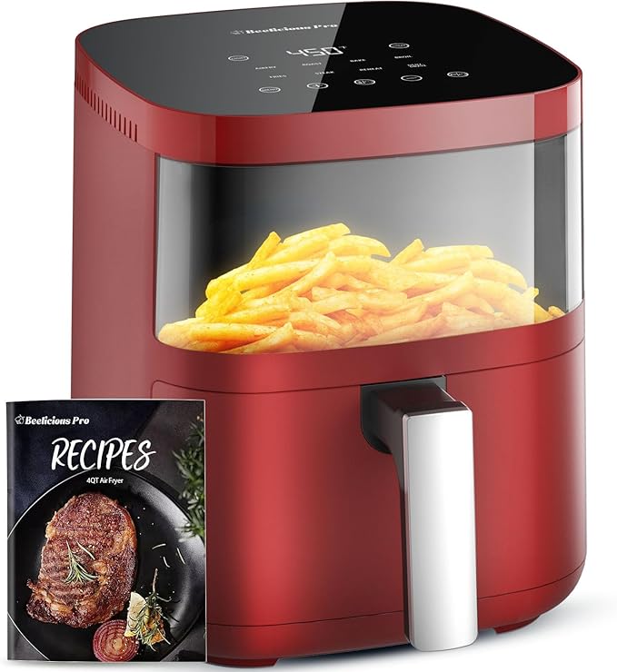 Air Fryer, Beelicious 8-In-One Smart Compact 4QT Air Fryers, with Viewing Window, Shake Reminder, 450ԍF Digital Airfryer with Flavor-Lock Tech, Dishwasher-Safe & Nonstick, Fit for 1-3 People, Red