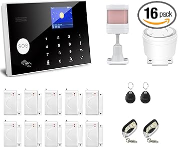 WiFi and GSM 17-Piece kit, Wireless Home Security Alarm System, Door/Window Sensor Entry Sensors (x10) with Smart Life and Tuya App Alert, 24/7 Monitoring Works with Google Assistant and Alexa