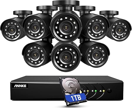 ANNKE 3K Lite Wired Security Camera System with AI Human/Vehicle Detection, 8CH H.265+ DVR and 8 x 1920TVL 2MP IP66 Home CCTV Cameras, Smart Playback, Email Alert with Images, 1TB Hard Drive - E200