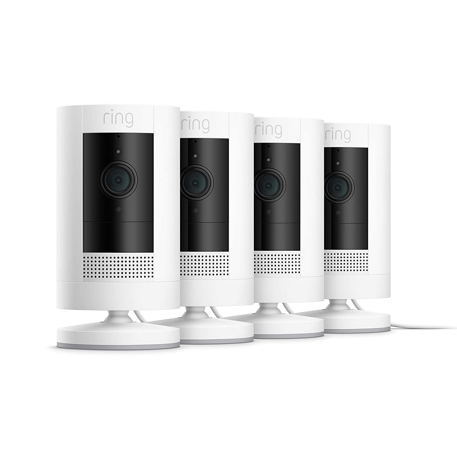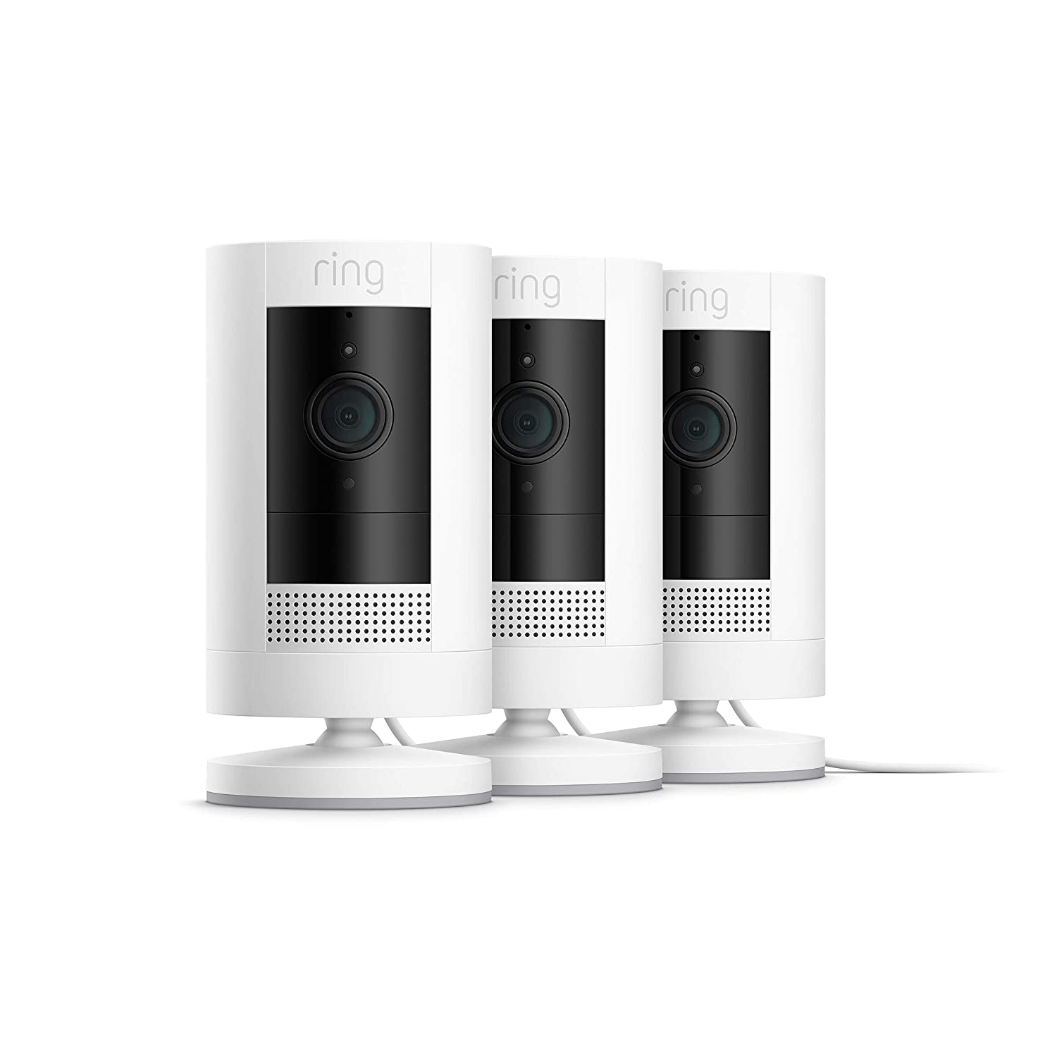 Ring Stick Up Cam Plug-In HD security camera with two-way talk, Works with Alexa - White