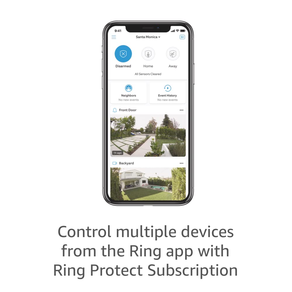 • With a Ring Protect Plan (subscription sold separately), record all your videos, review what you missed for up to 180 days, and share videos and photos.