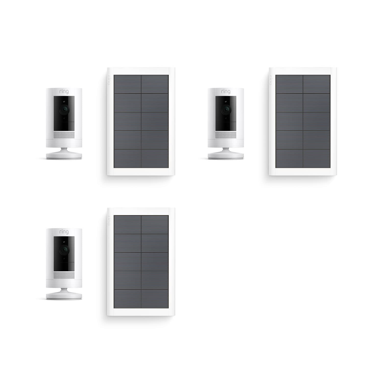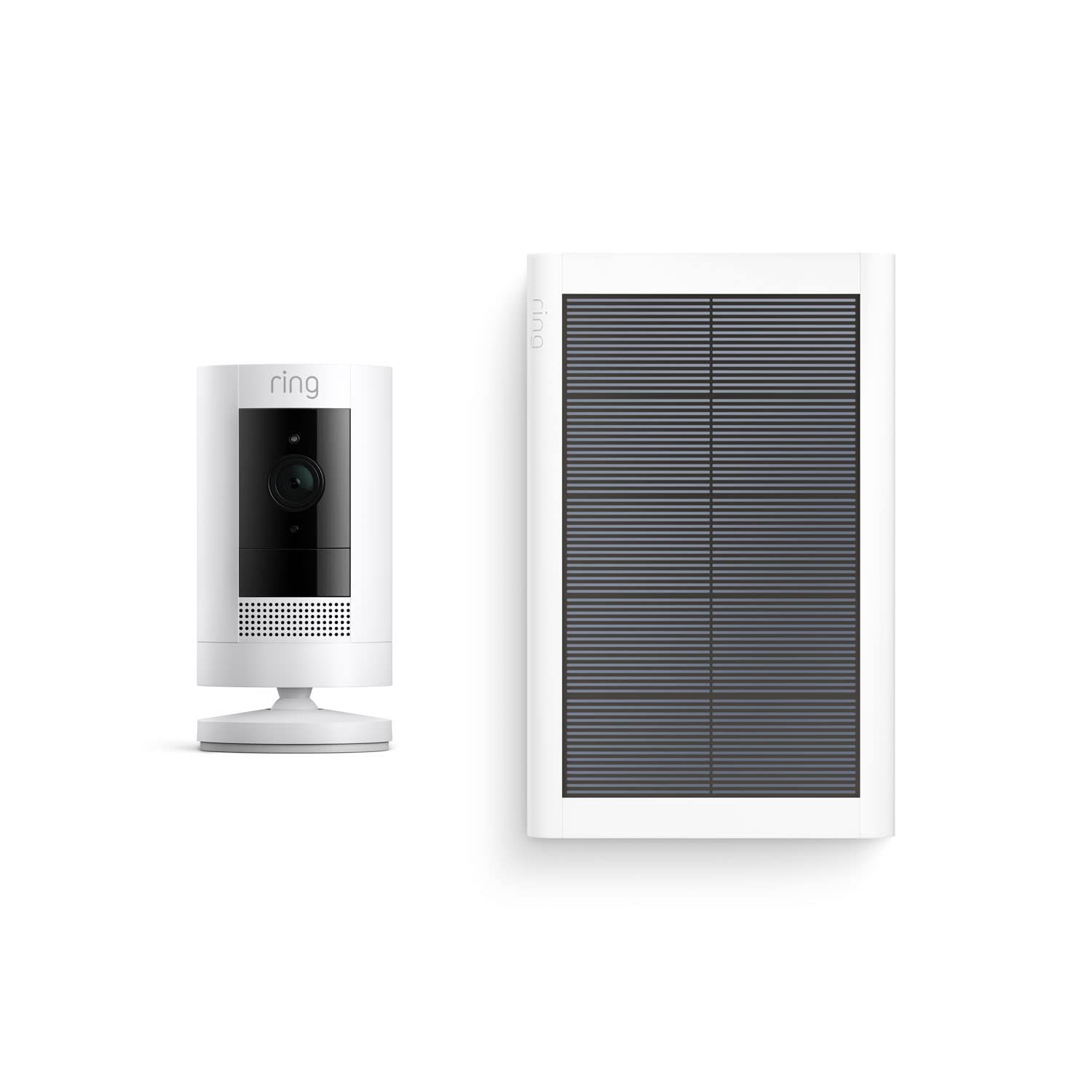 Ring Stick Up Cam Solar HD security camera with two-way talk, Works with Alexa - White