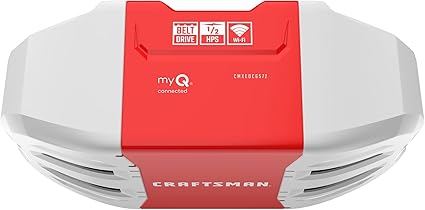 Craftsman 1/2 HP Smart myQ Smartphone Controlled-Belt Drive, Wireless Keypad Included, Model CMXEOCG572, Red Garage Door Opener