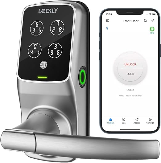 Lockly Secure Plus, Bluetooth Smart Lock, Keyless Entry Door Lock, PIN GenieÎÂ Keypad, 3D Biometric Fingerprint Sensor, Auto Lock - Satin Nickel (PGD628FSN) - Latch Edition