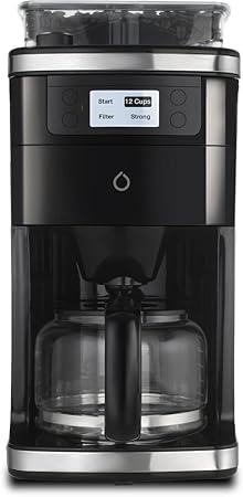 Smarter iCoffee Remote Grind and Brew Drip Coffee Maker On Demand with Smarter App, Built-In Bean Grinder, and Warming Plate for Kitchen, Dorm Room, or Office in Black