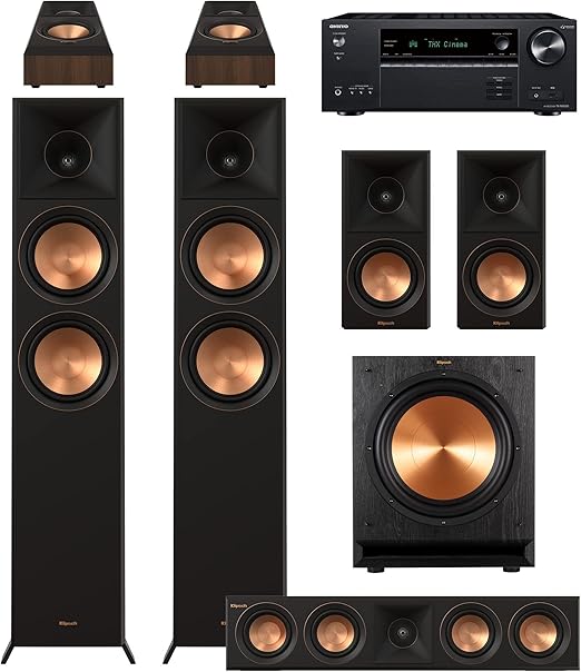 Klipsch 7.1 Walnut System - Model RP-6000F II, RP-404C II, RP-500M II, RP-500SA II, SPL-120, TX-NR6100 Receiver