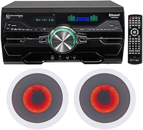 Technical Pro Professional 4000w Receiver/Amplifier/DVD Player Bluetooth/USB/FM Bundle with Pair Rockville HC65-LED 6.5" 500 Watt in-Ceiling Home Theater Speakers with LED
