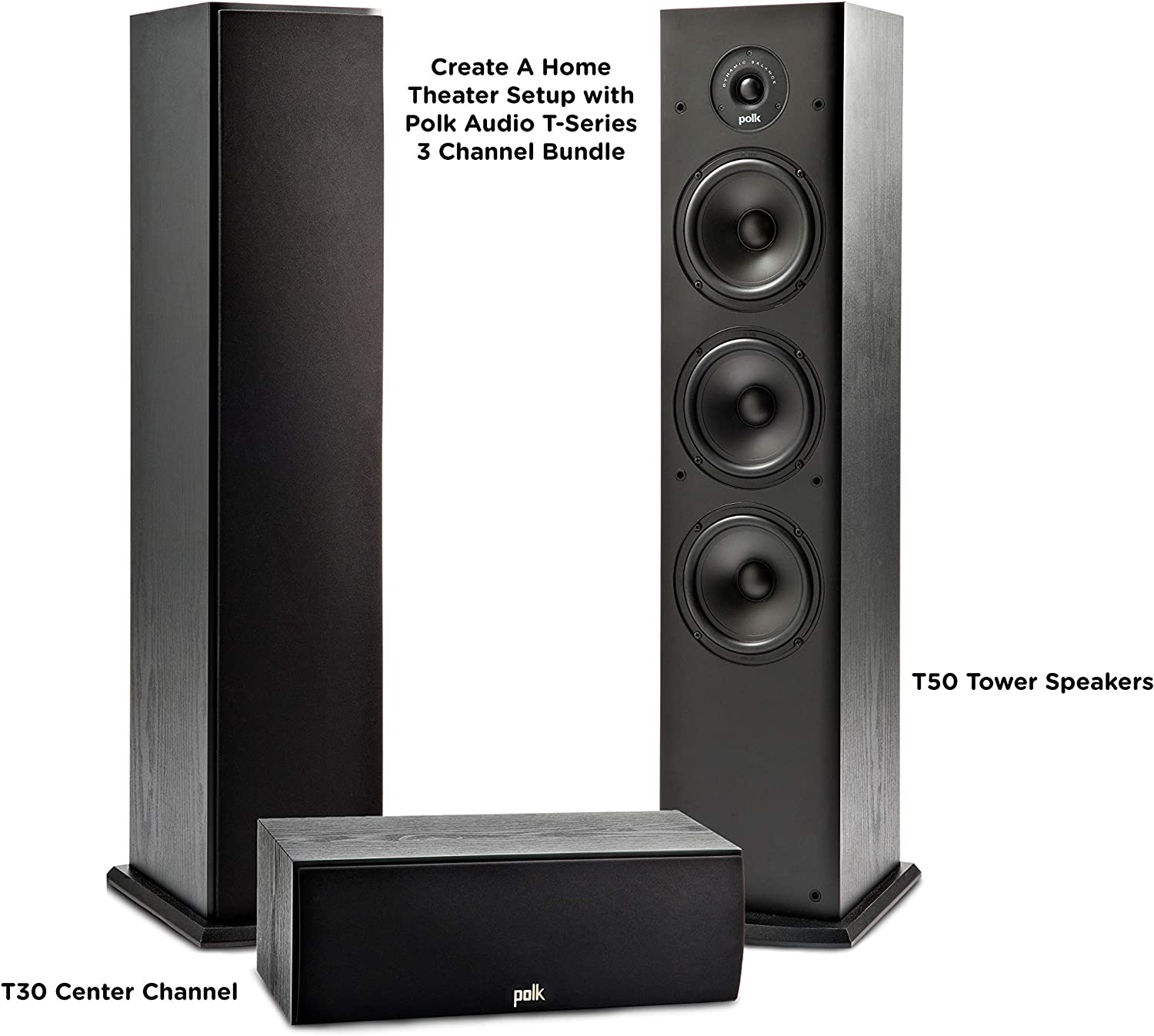 Polk Audio T Series 3.1 Channel Complete Home Theater System with Powered Subwoofer | One (1) T30 Center Channel, Two (2) T50 Tower Speakers | Wi-Fi, Alexa, HEOS Built-in