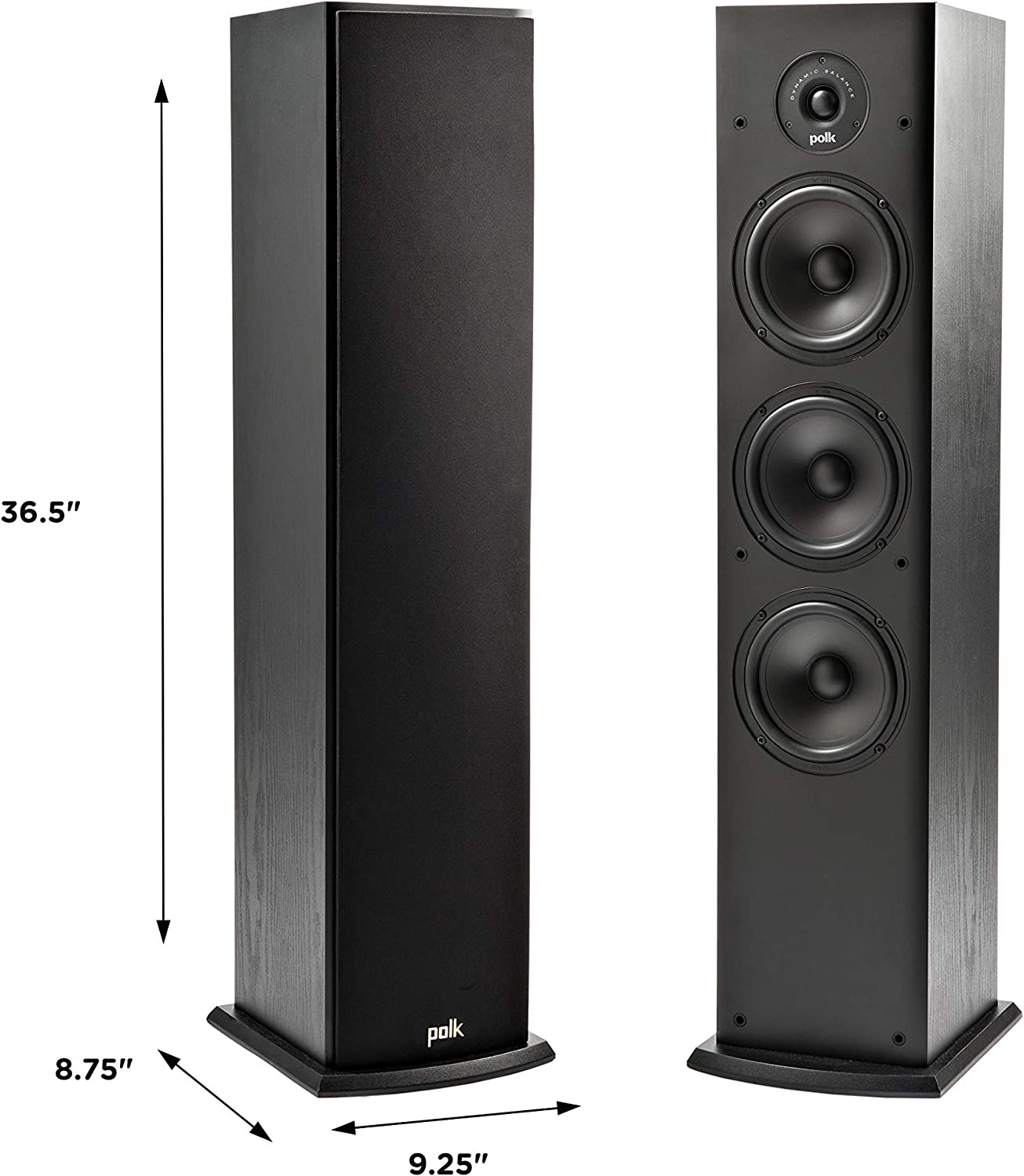 • All speakers, including the sub, are equipped with POLK’S PROPRIETARY DYNAMIC BALANCE TECHNOLOGY with wider dispersion & minimal distortions so every listener in the room hears UNSURPASSED THREE-DIMENSIONAL SURROUND SOUND WITH HEART-THUMPING BASS
