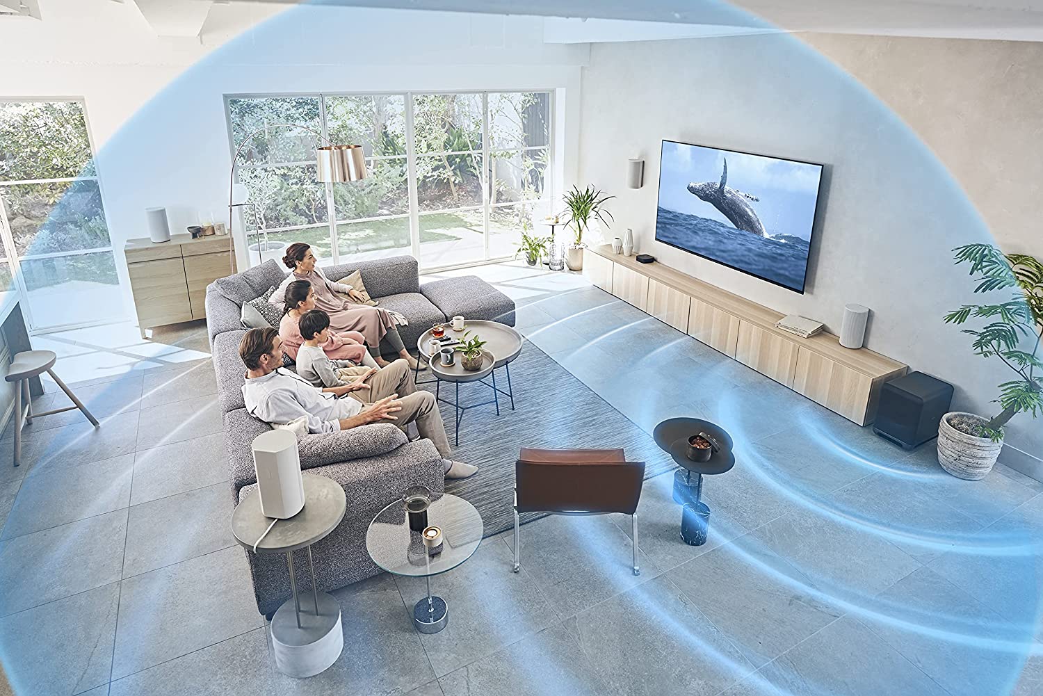 Immerse yourself in a multi-dimensional audio experience with the HT-A9 home theater system. Unique 360 Spatial Sound Mapping technology calibrates sound to your room for an environment that seems to expand beyond the walls. Support for 8K HDR, 4K 120p passthrough, and Dolby Vision video passthrough make your favorite movies and games sound out of this world.