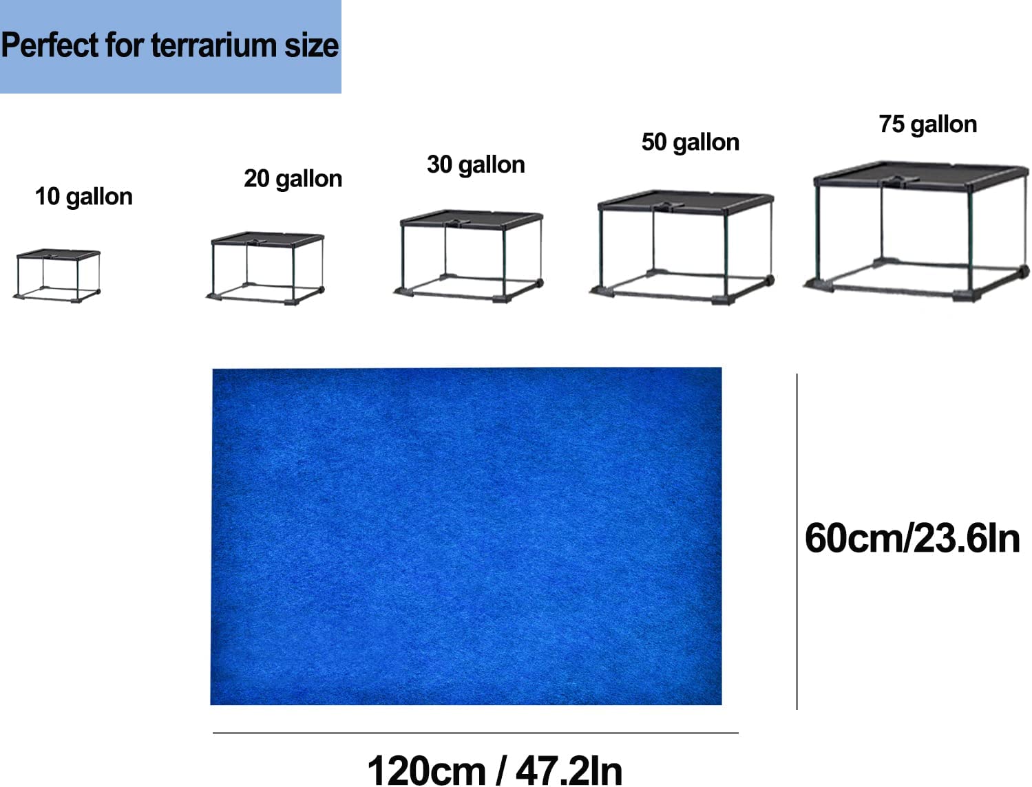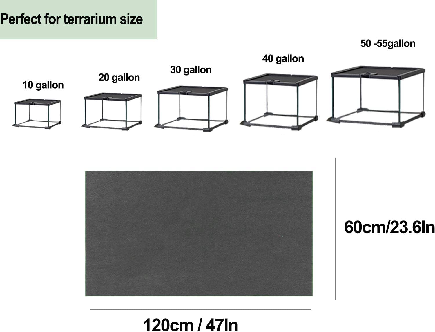 • 【Specification】 Size: 47" x 23.6"/120x60cm.Reptile mat is made of high density tech fiber material. It is suitable for 10-75gallon.