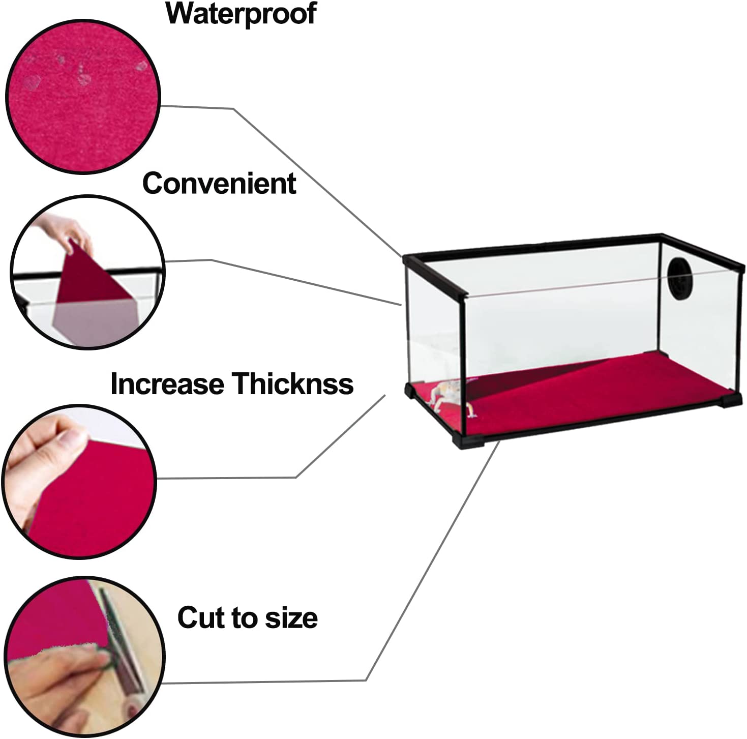 • 【High Security】Low maintenance cost and strong absorption. The carpet material is soft, it will not harm reptiles.