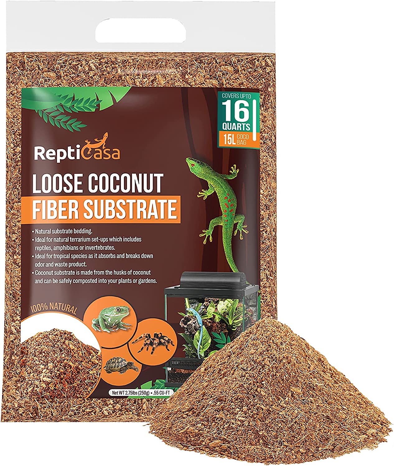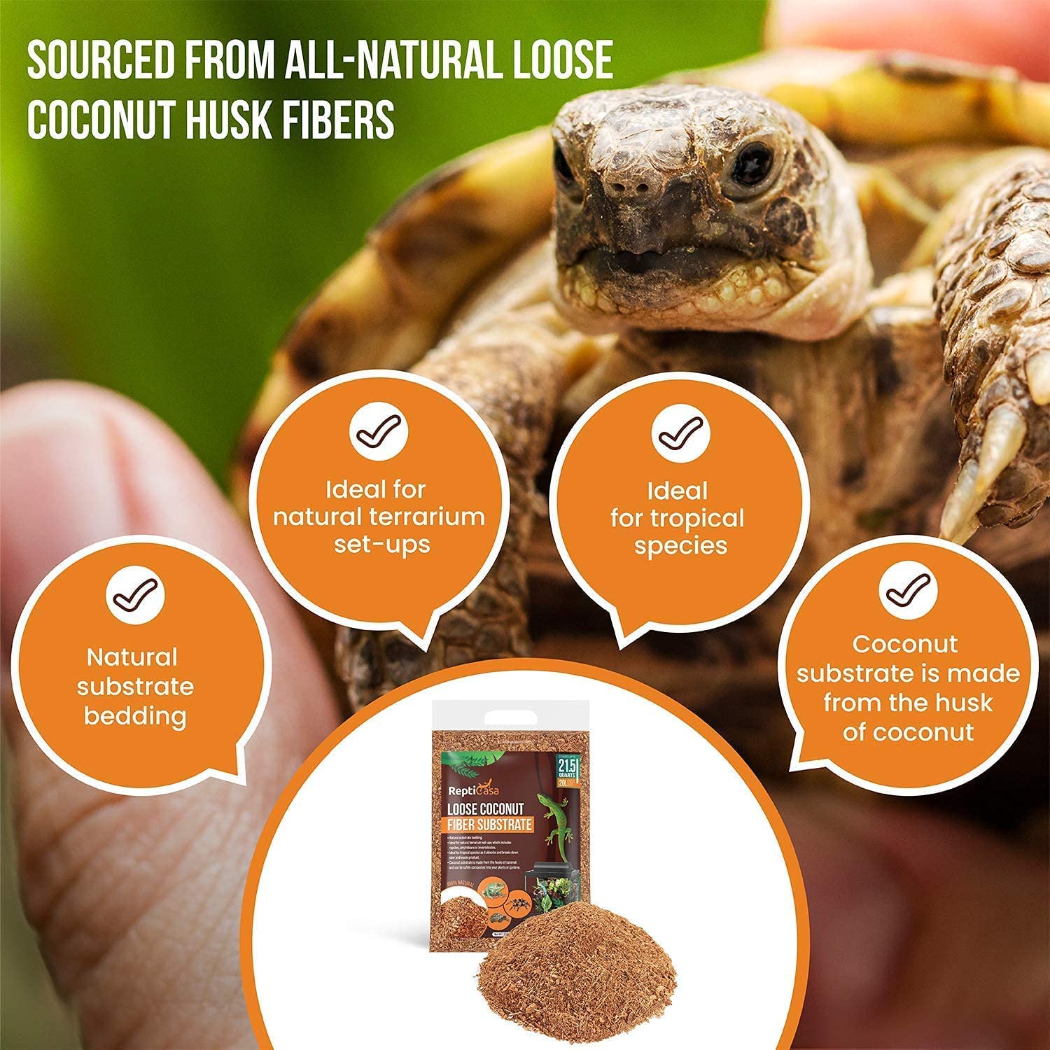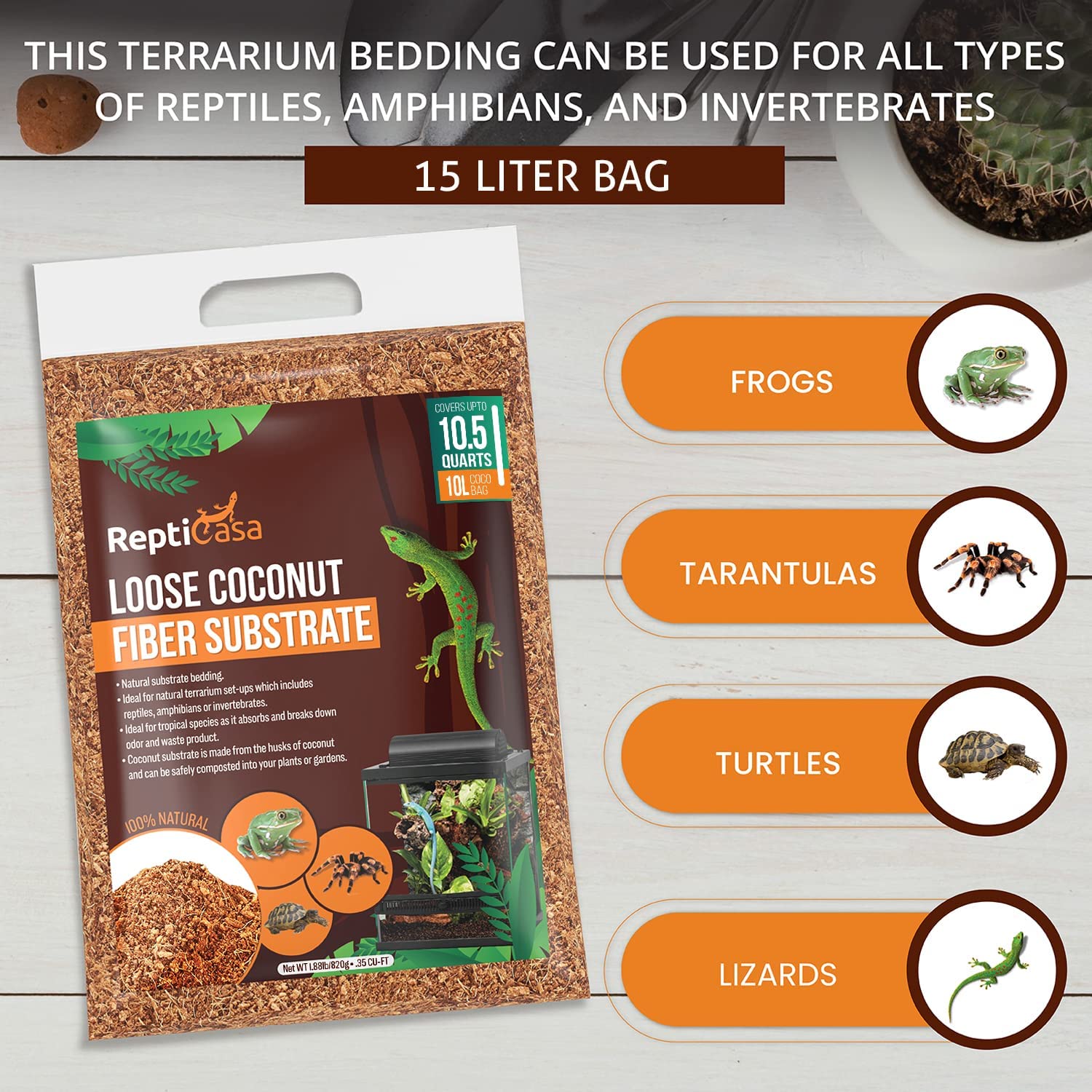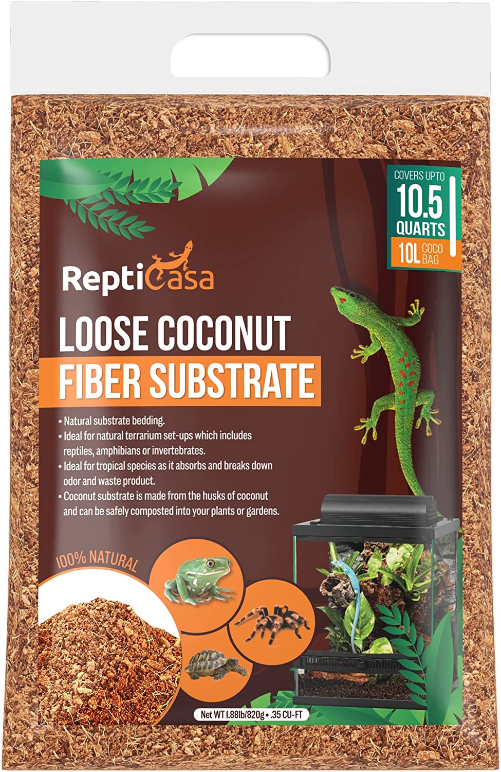 ReptiCasa Loose Coconut Substrate Husk Fibers, Clean Natural Terrarium Bedding for Reptiles, Amphibians, or Invertebrates, Waste, Liquid and Odor Absorbent