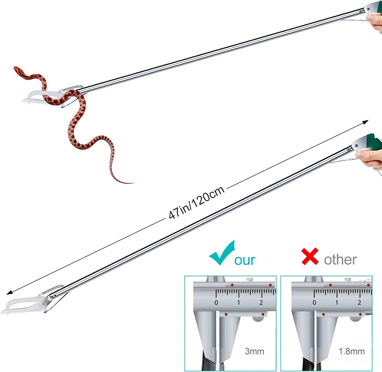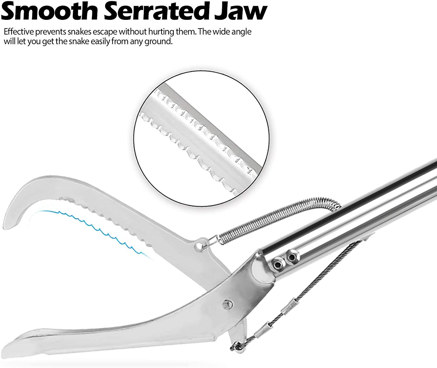 • 🐍No Damage to Snakes - Smooth serrated wide jaw allows to get maximum grip pressure with minimal risk of damage to the reptiles. These snake tongs provide a means to catch Snakes and other reptiles without any harm. So instead of hurting or killing snakes for your safety.