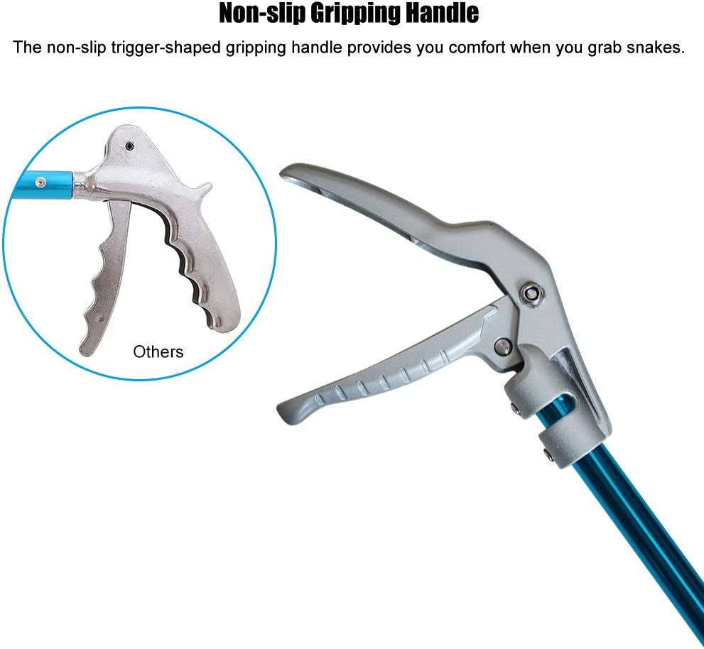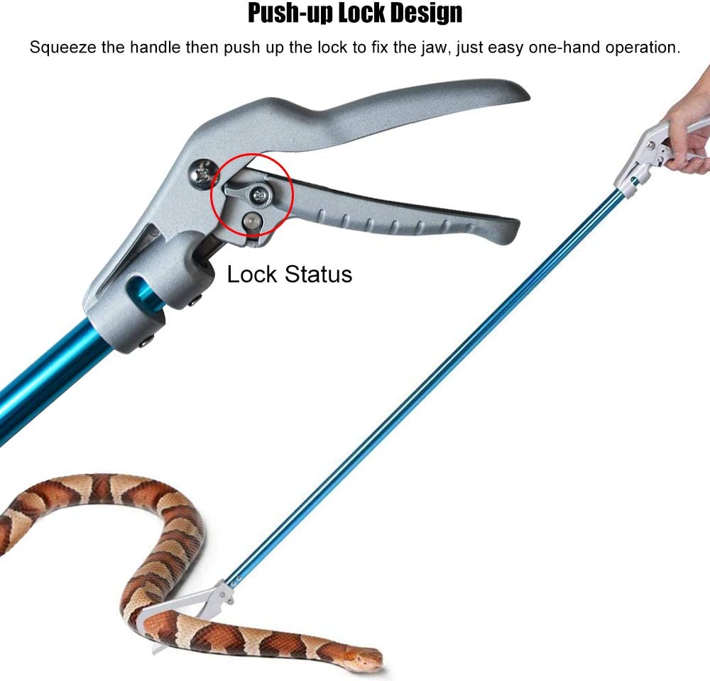 • 【Push To Lock Design】 The lock on the grip is easy to operate while you are handling snake issues. Just squeeze the handle then push up to lock the jaw. Please check the screw on lock before using it.