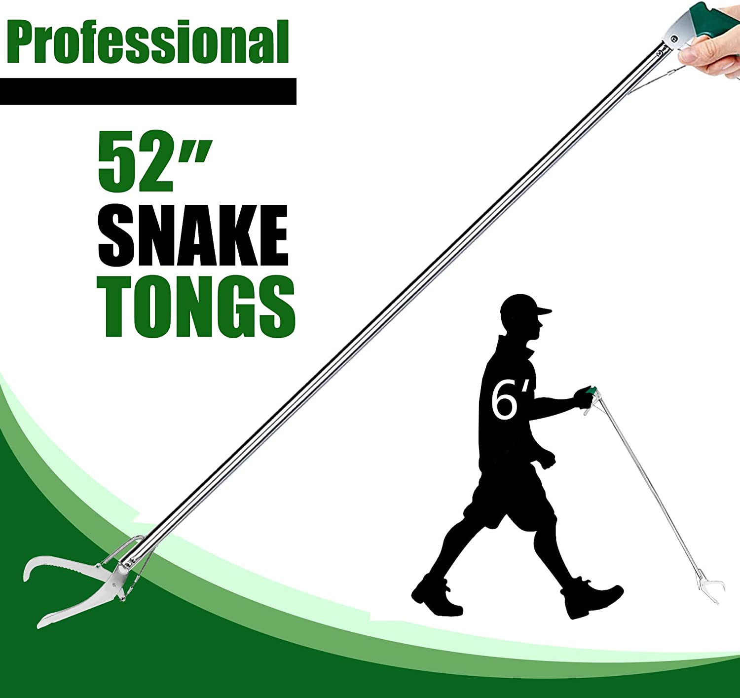 IC ICLOVER Snake Hooks and Grabbers, 52" Extra Long Wide Jaw Snake Tongs & 39" Collapsible Portable Snake Stick, Professional Snake Handling Tool Set for Catching Moving Pick-up Reptiles Rattle Snake