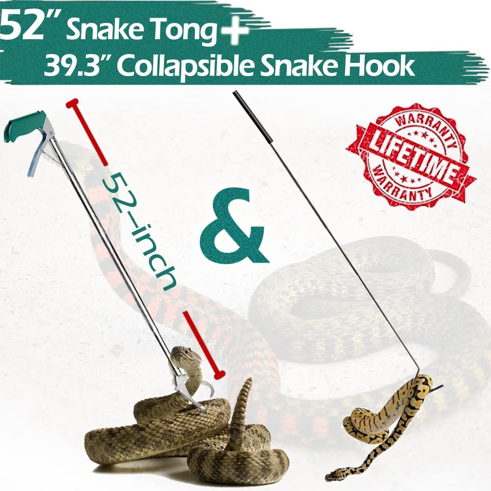 • 【Snake Tong & Hook Kit】 52" snake tongs + 39.3" collapsible snake hook, grab the head of snake with the snake tong then hold its tail with the snake hook to move the snake wherever you want, make your snake hunting safer.