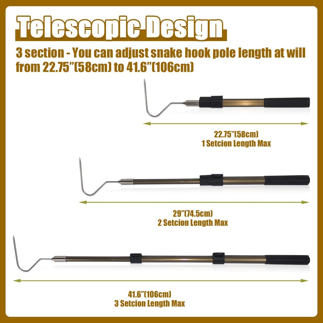 • 【More Solid & Build to Last】Snake cather retractable pole made of aluminum while snake hook is stainless steel. It does have some heft, and much more durable.