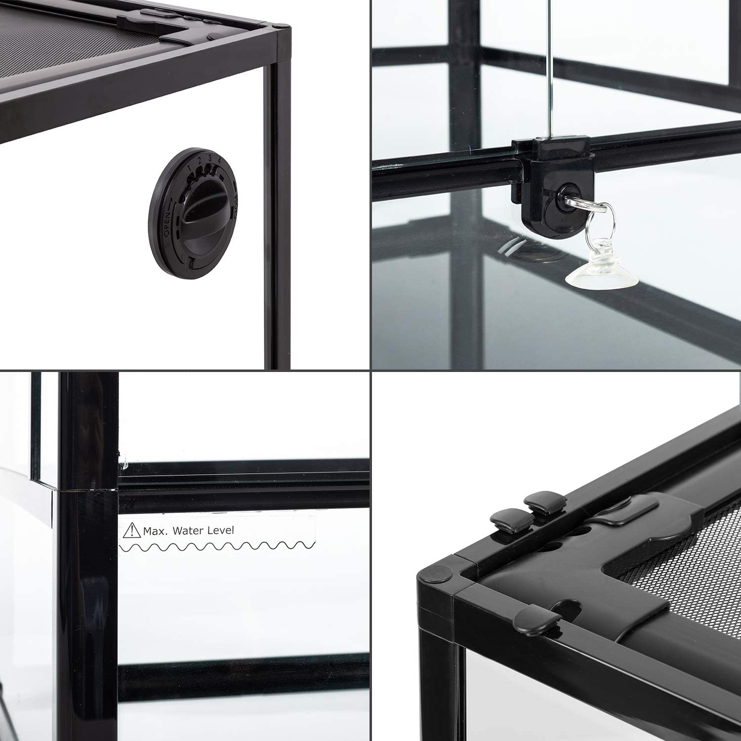 • Raised bottom frame in order to fit a substrate heater; And waterproof bottom can hold water for some amphibian pets