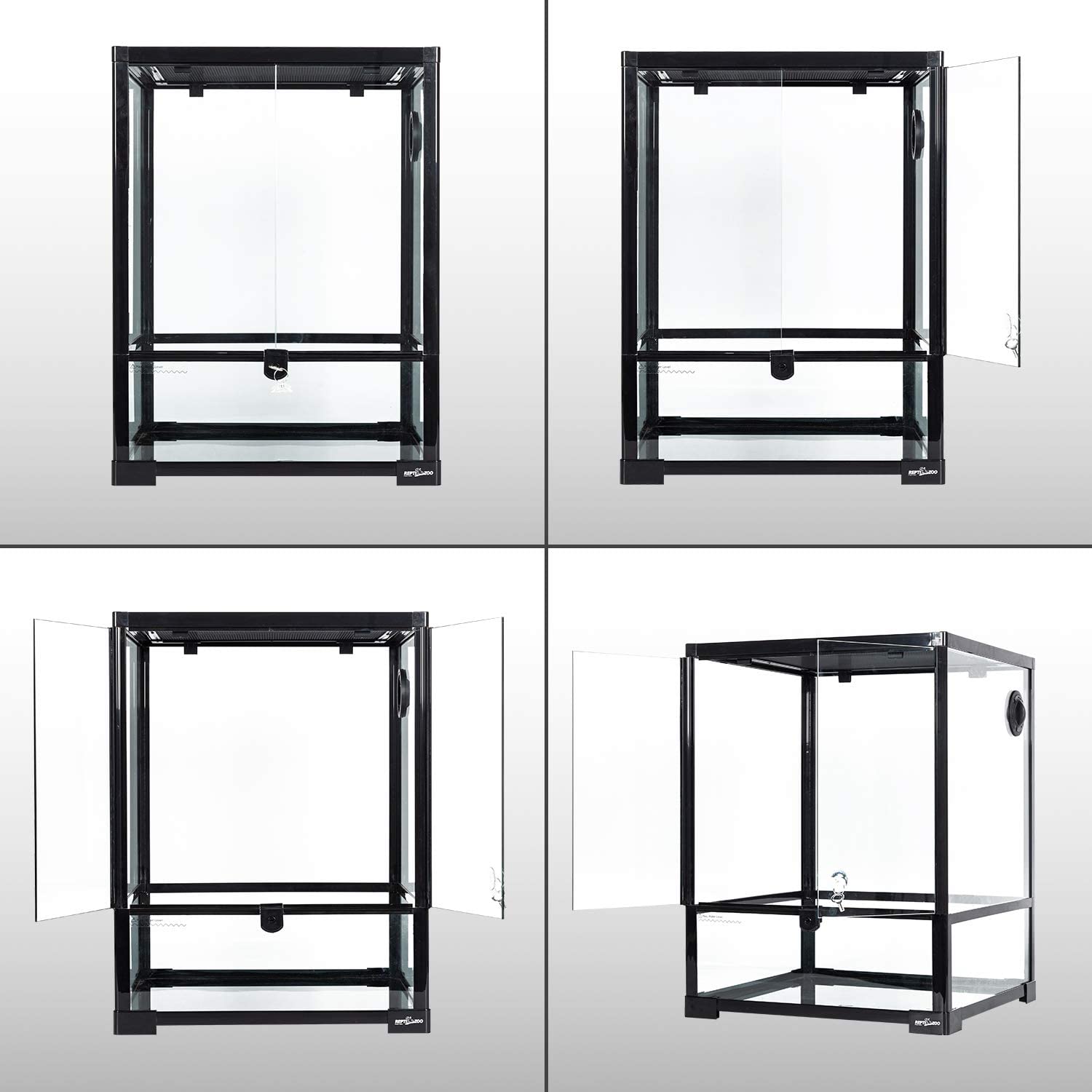 REPTI ZOO Reptile Glass Terrarium, 18" x 18" x 24" Front Opening Terrarium with Double Hinge Door & Top Screen Ventilation, 30 Gallon Tank Large Reptile Terrarium (Knock-Down)