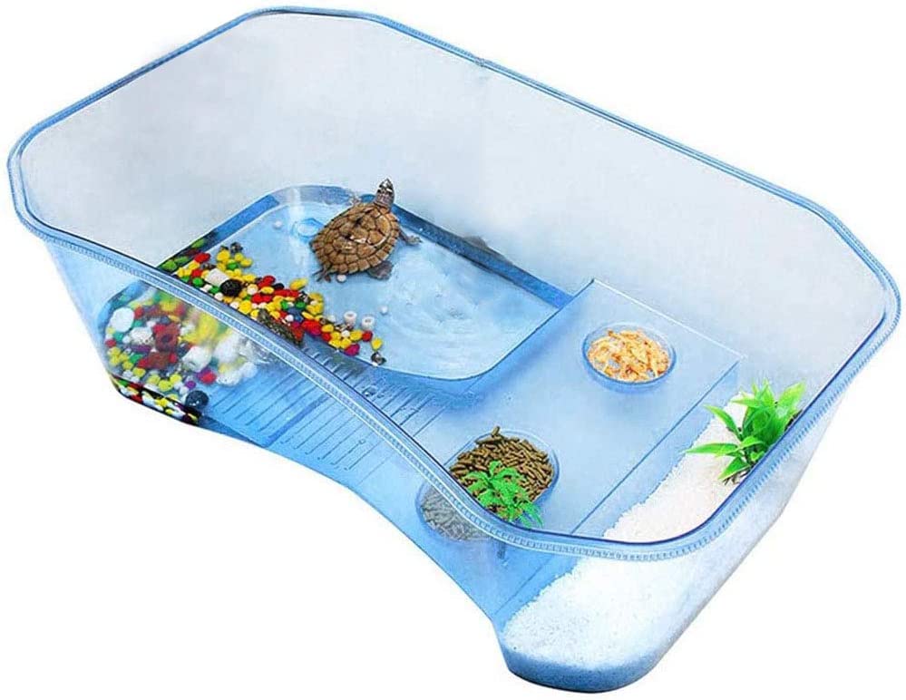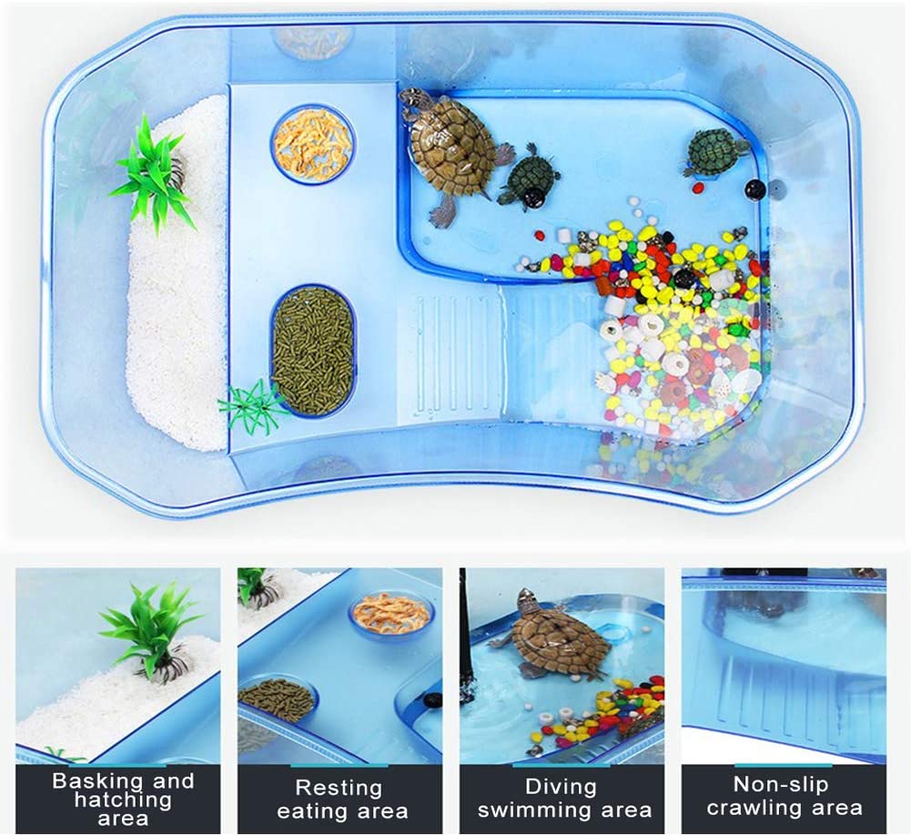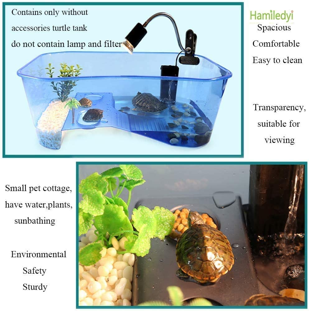 Reptile Habitat,Turtle Habitat Terrapin Lake Reptile Aquarium Tank with Platform Plants (Blue)(Excluding Accessories