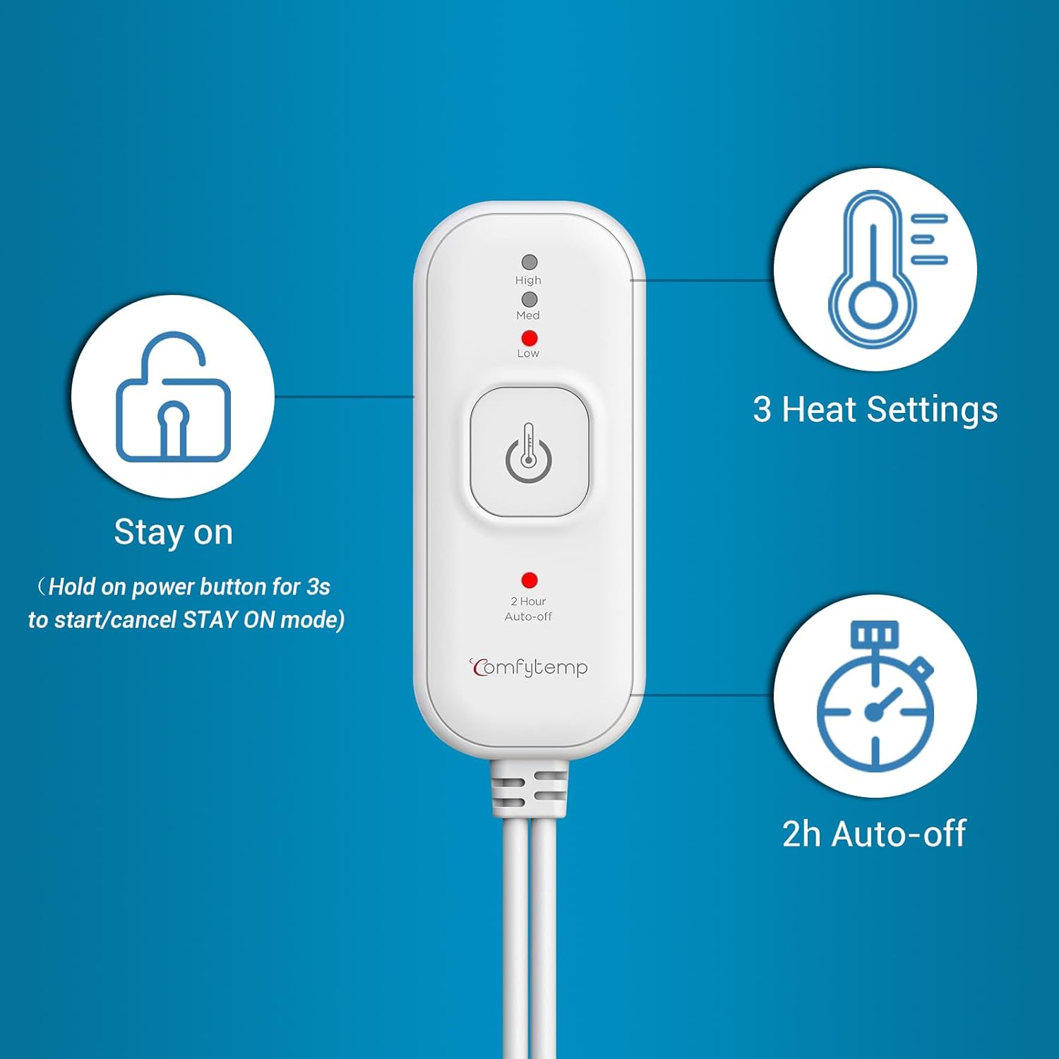 • 【ADJUSTABLE HEAT SETTINGS & AUTO-OFF】 3 personalized heat settings, low(104°F~122°F), medium(122°F~140°F), high(140~158°F), customize your desired heat, plus 1.5h auto shut off, feature energy-saving and excessive heating protection