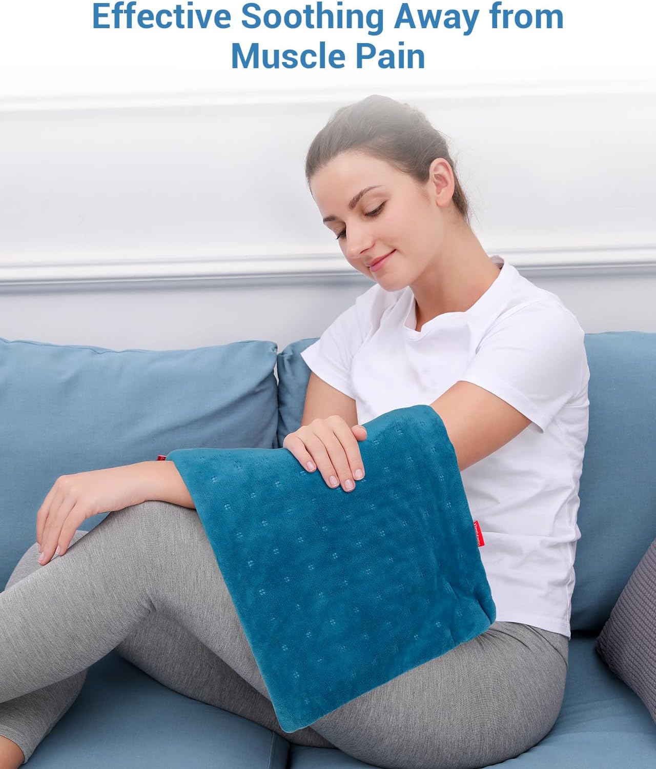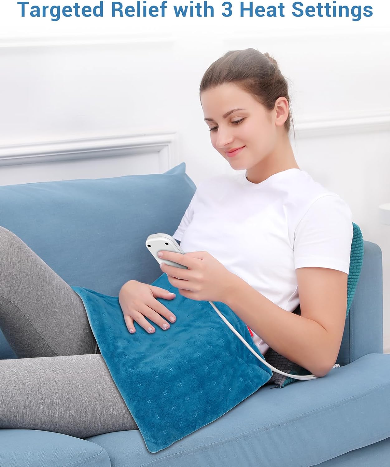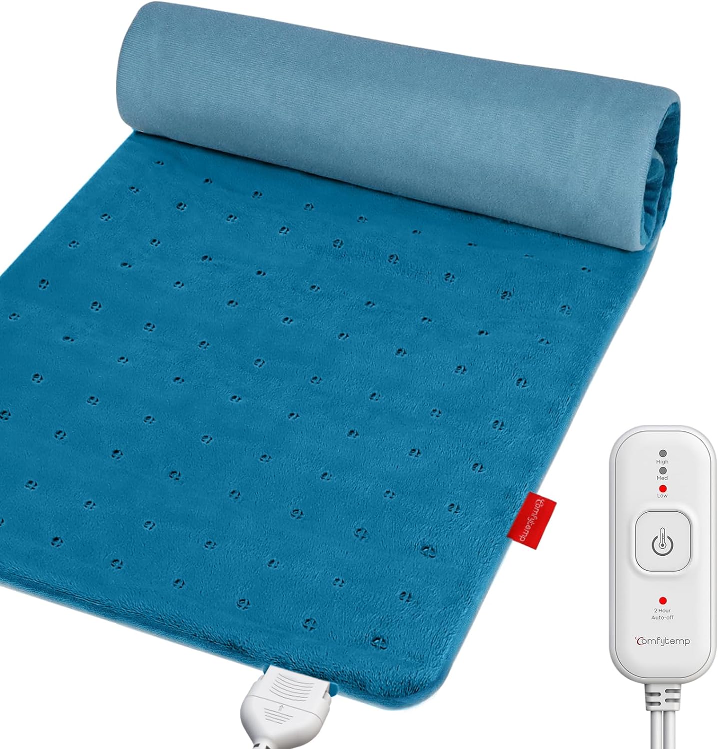 Comfytemp Heating Pad for Cramps, Large Electric Heat Pad with 3 Heat Setting, Stay On, 2H Auto-Off, Ultra-Soft, Moist Heated Pad for Back Pain, Neck and Shoulder, 12 x 24 Inch - Washable