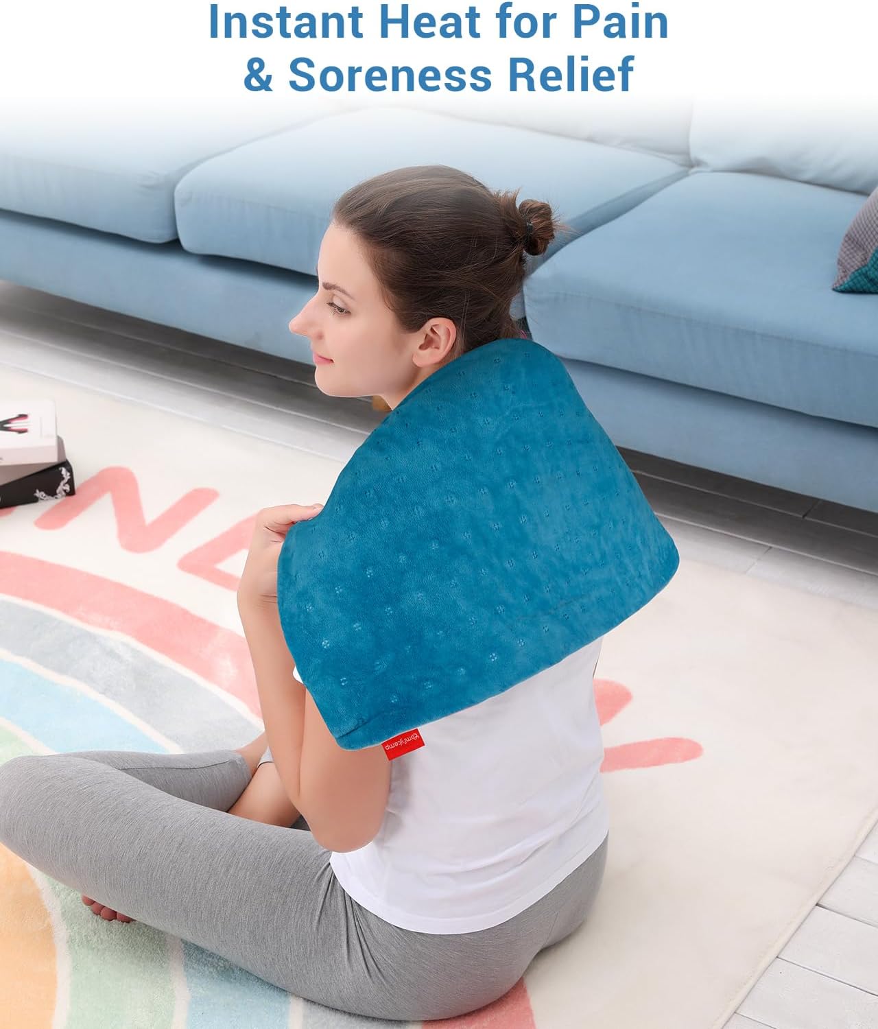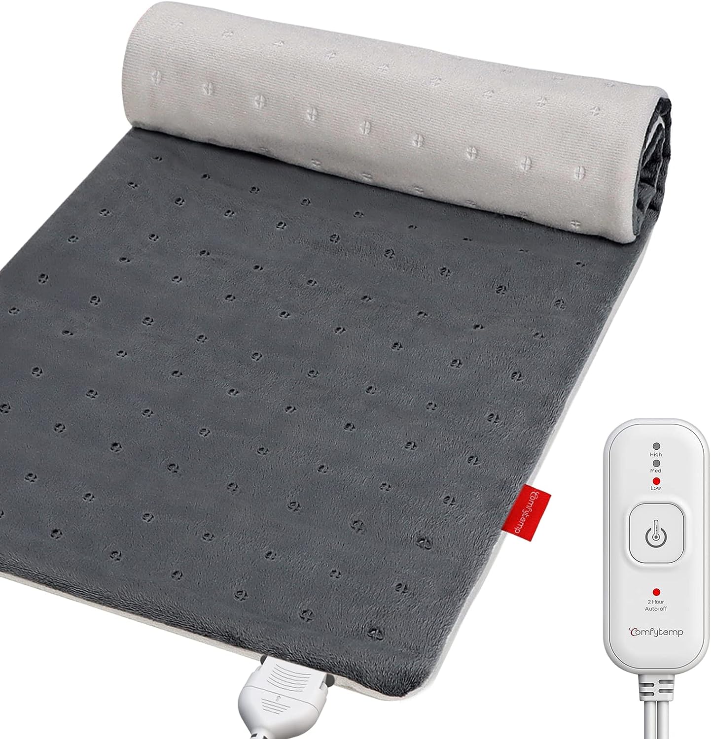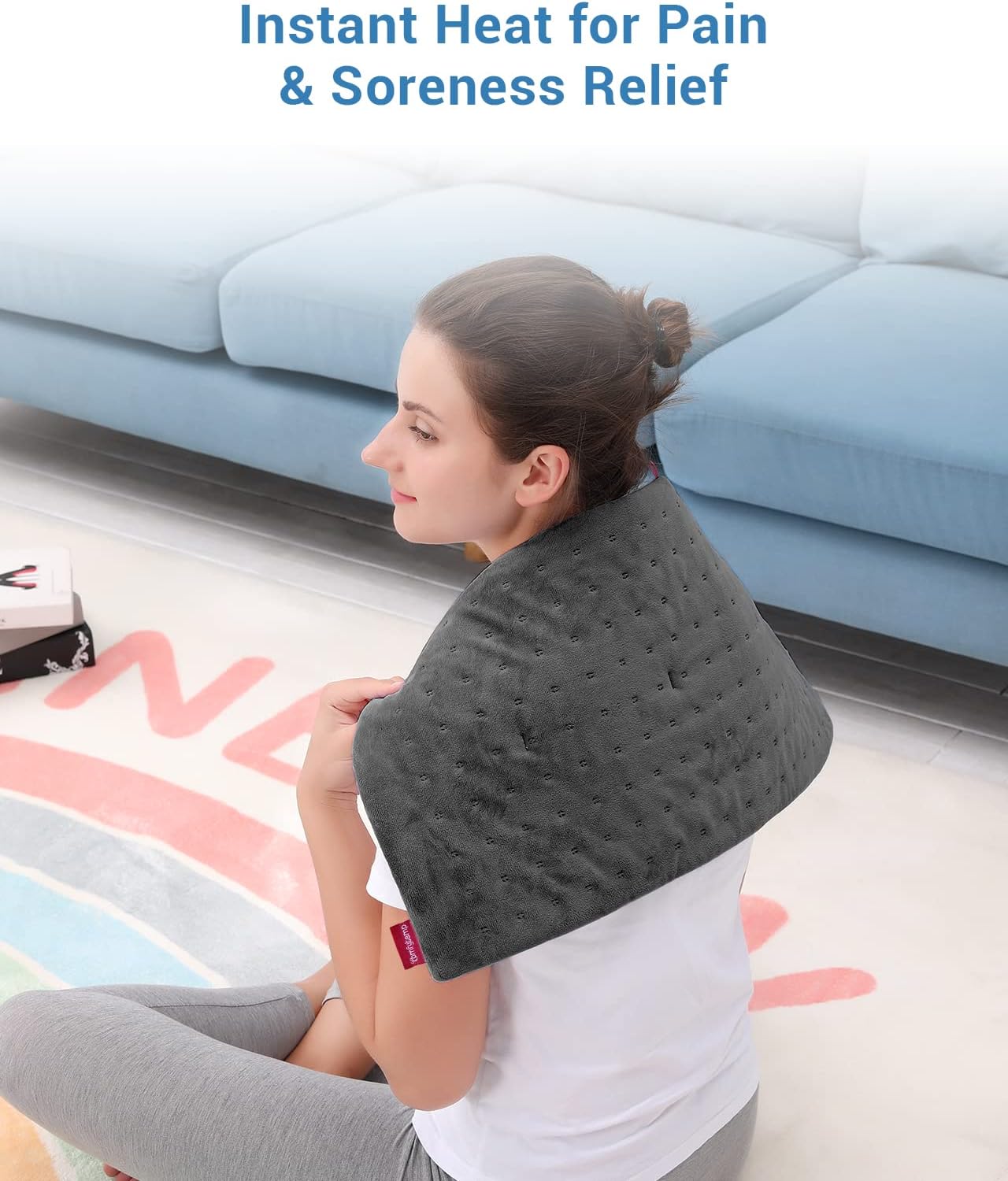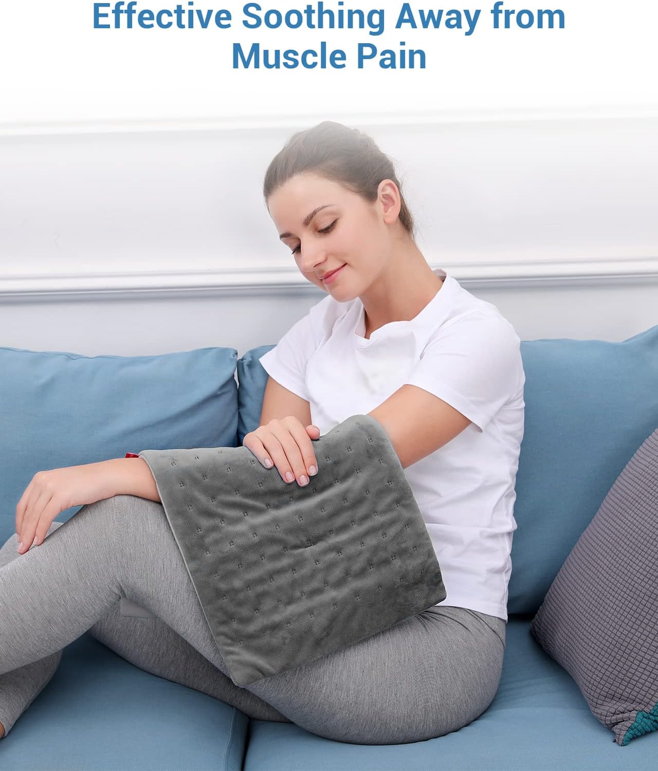 Comfytemp Heating Pad for Cramps, Large Electric Heat Pad with 3 Heat Setting, Stay On, 2H Auto-Off, Ultra-Soft, Moist Heated Pad for Back Pain, Neck and Shoulder, 12 x 24 Inch - Washable