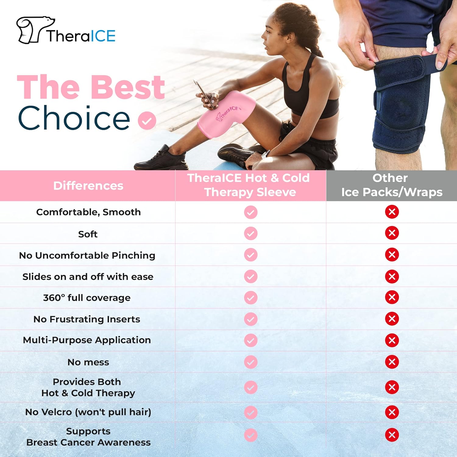 • As a natural remedy, this knee compression sleeve for knee pain is a safe choice for daily use. It aids in rehabilitation and recovery, providing excellent support to injured or vulnerable zones without hindering mobility. The TheraICE is more than just an ice pack for injuries; it's a comprehensive solution to muscle and joint pain.