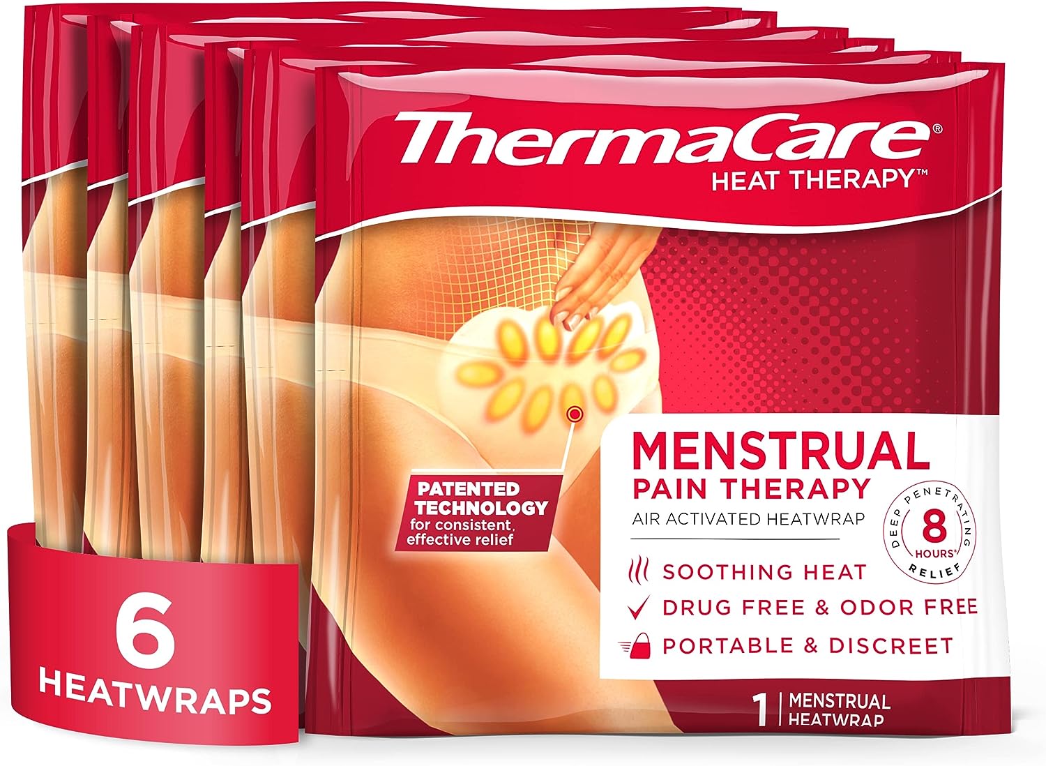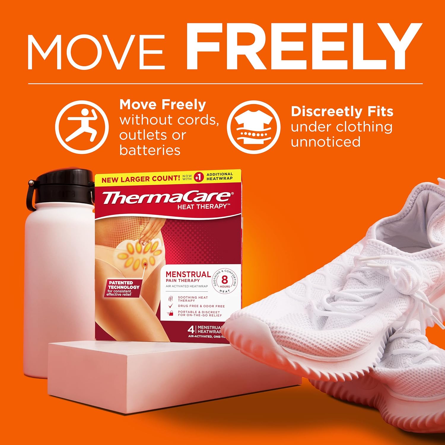 • Thermacare Period Pain Relief Heatwraps easily fit under clothing without being noticed. Move freely with proven therapeutic heat without cords, outlets or batteries.