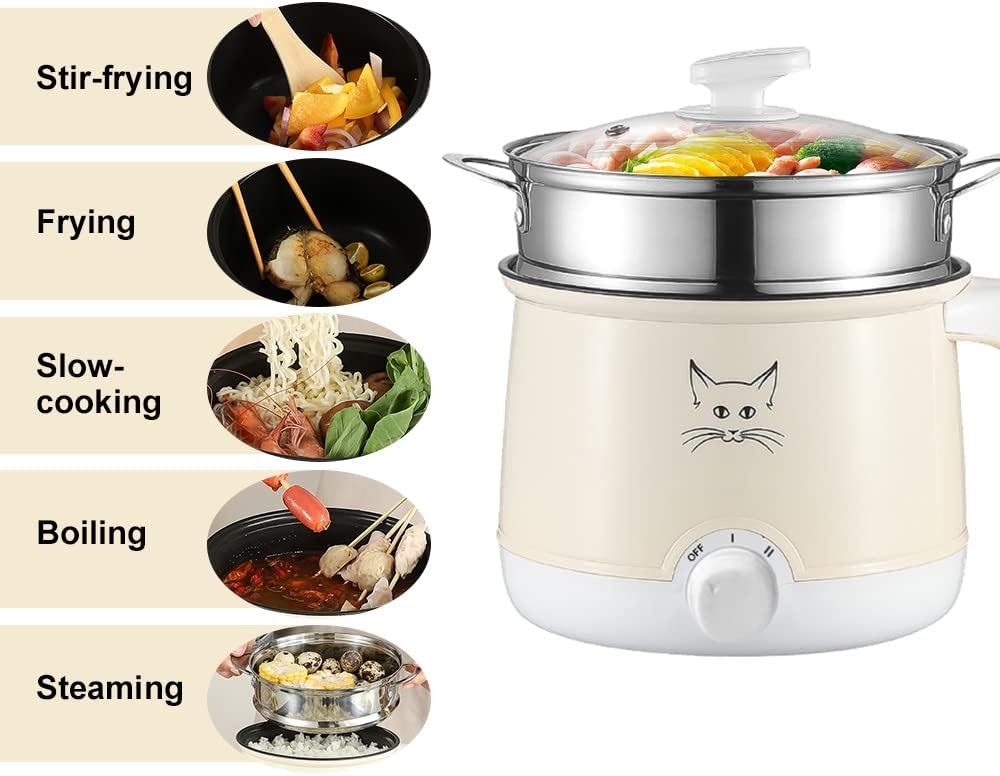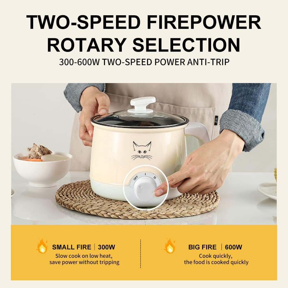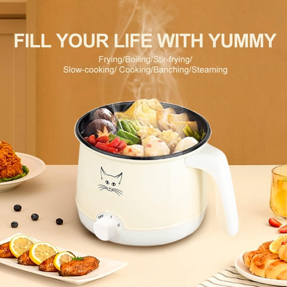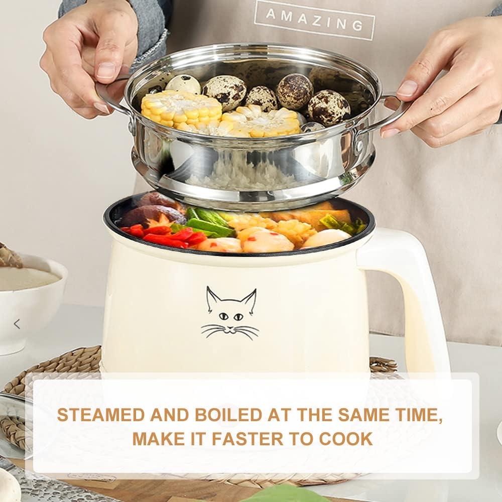 Avkobow Hot Pot, Electric Pot for Raman, Soup, Noodles, Steak, Oatmeal, Rapid Mini cooker with Temperature control, 1.8L (Khaki)