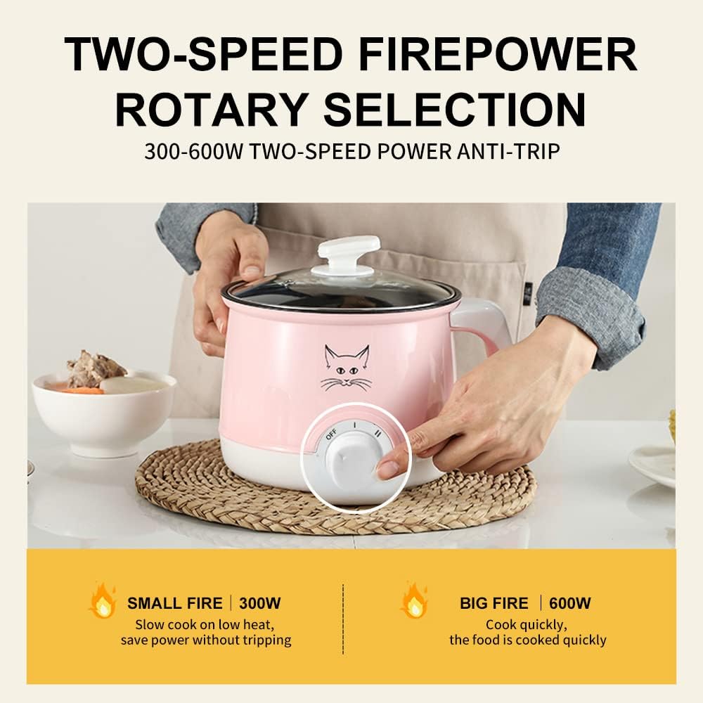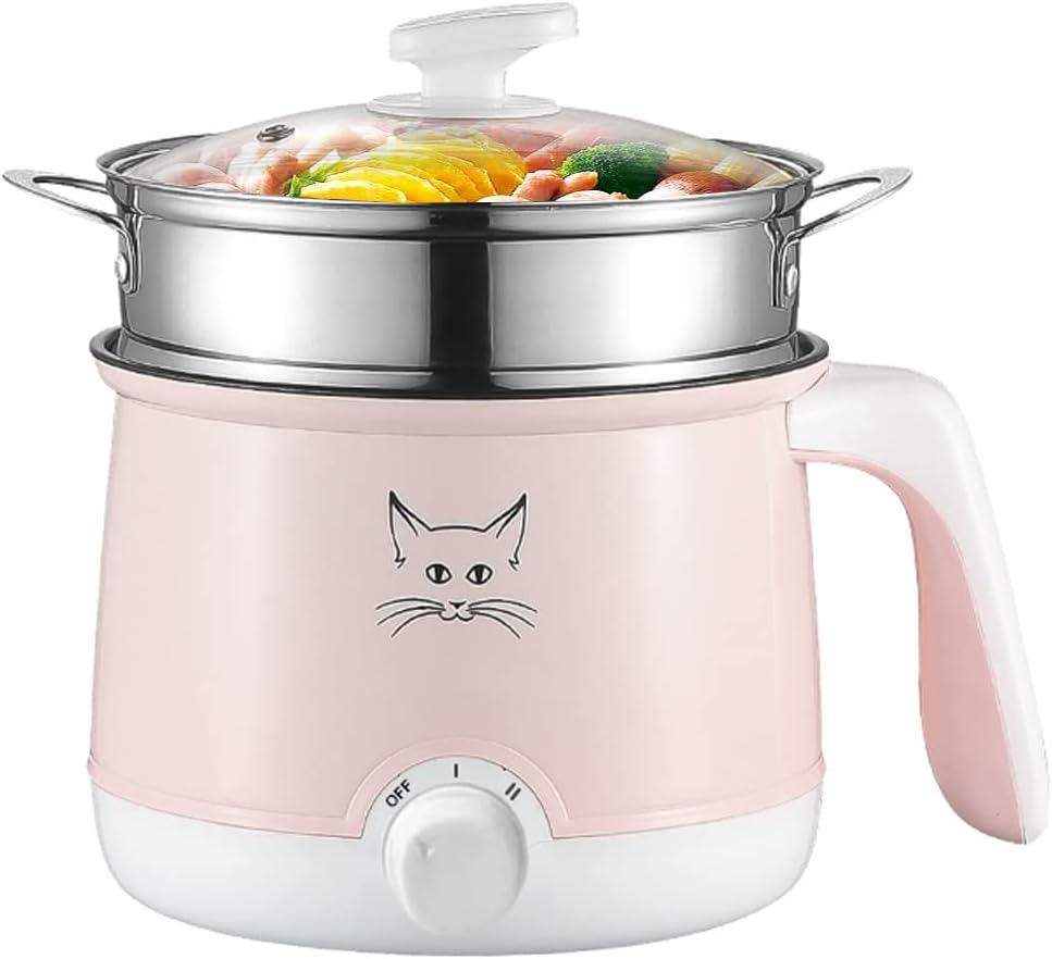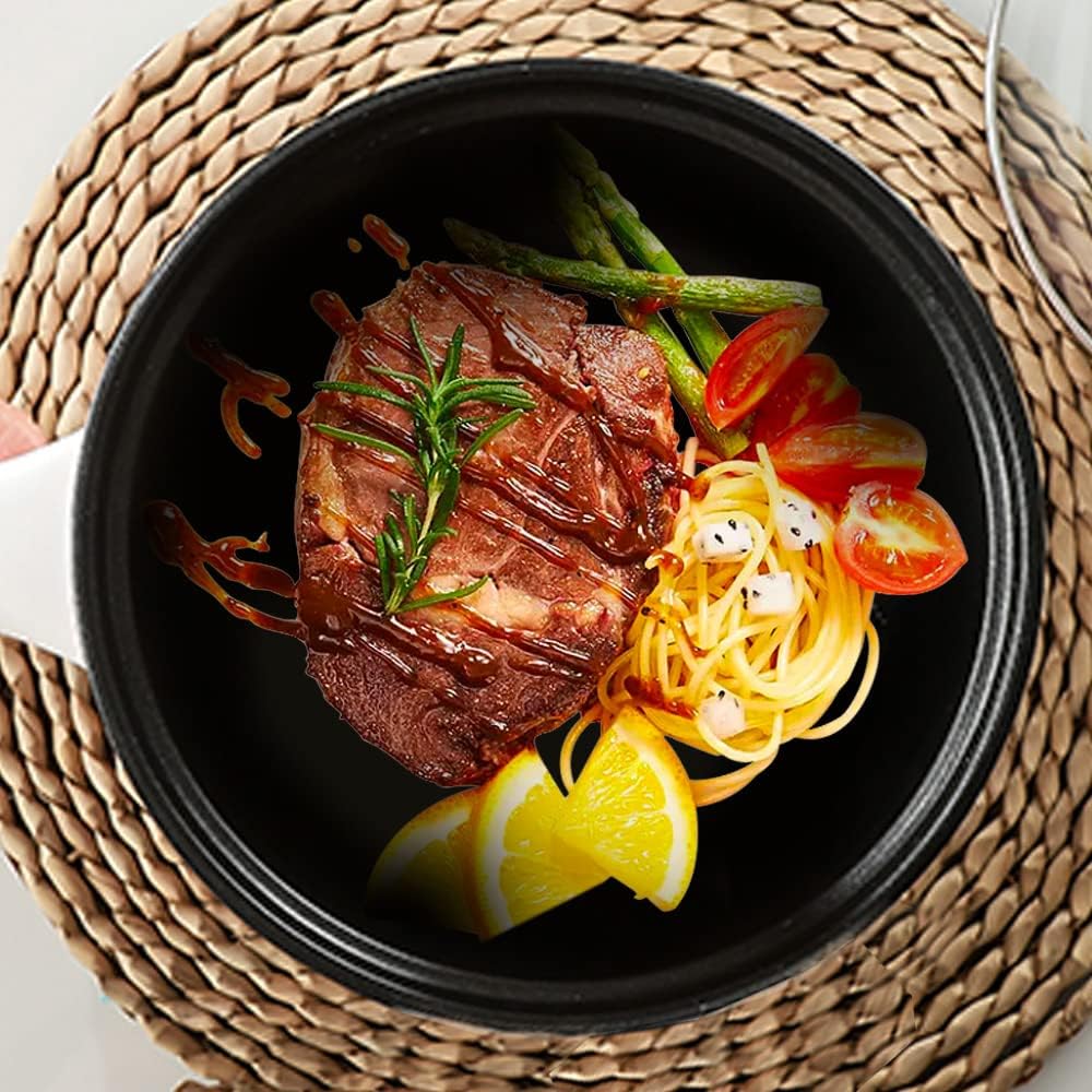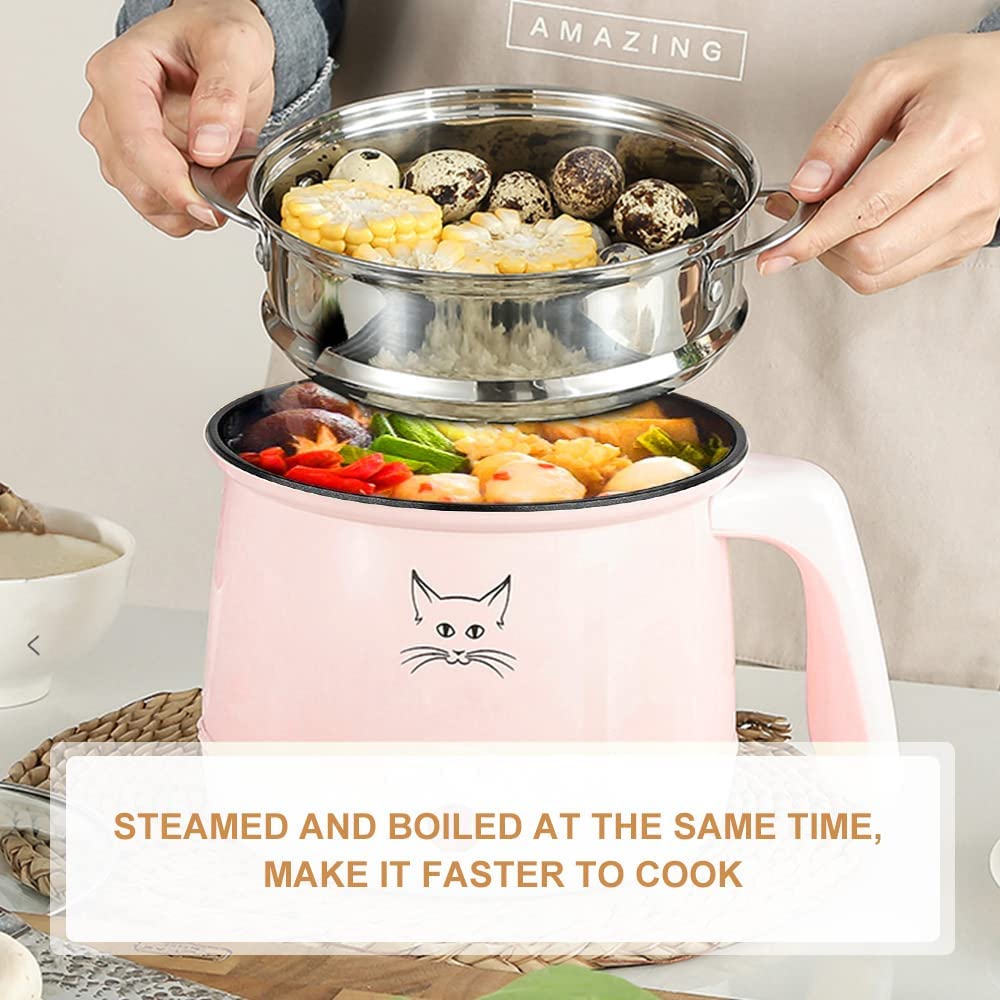 Avkobow Hot Pot, Electric Pot for Raman, Soup, Noodles, Steak, Oatmeal, Rapid Mini cooker with Temperature control, 1.8L (Khaki)