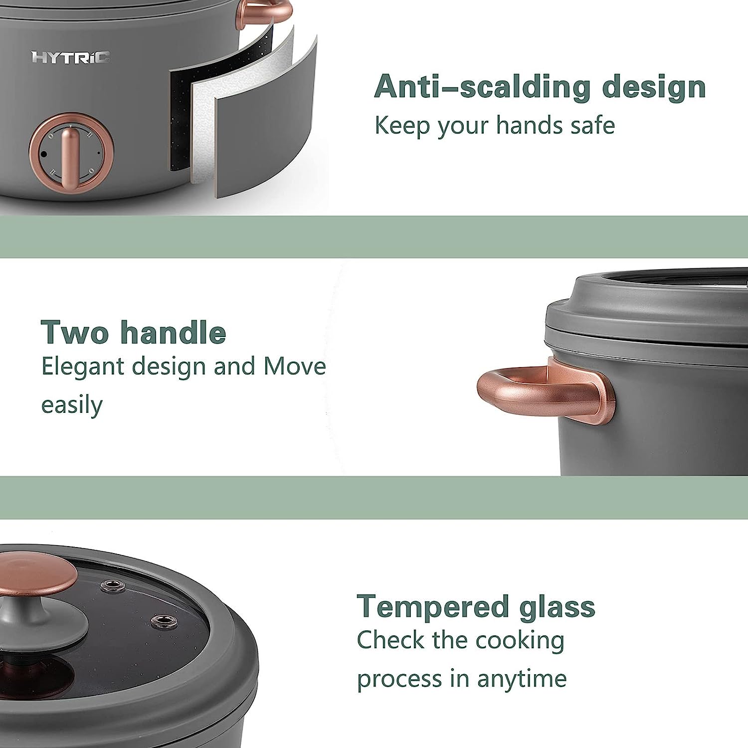 • Rapid Heating and Safe - We use round-shaped embedded heating element technology on our cooker. This technology will keep your food heated evenly, not only make your tasty foods done more rapidly than traditional stove kitchenware but also prevent the foods burning. In addition, Hytric electric cooker has overheating protection, it will automatically power off when the pot at the dry burning and overheating status.