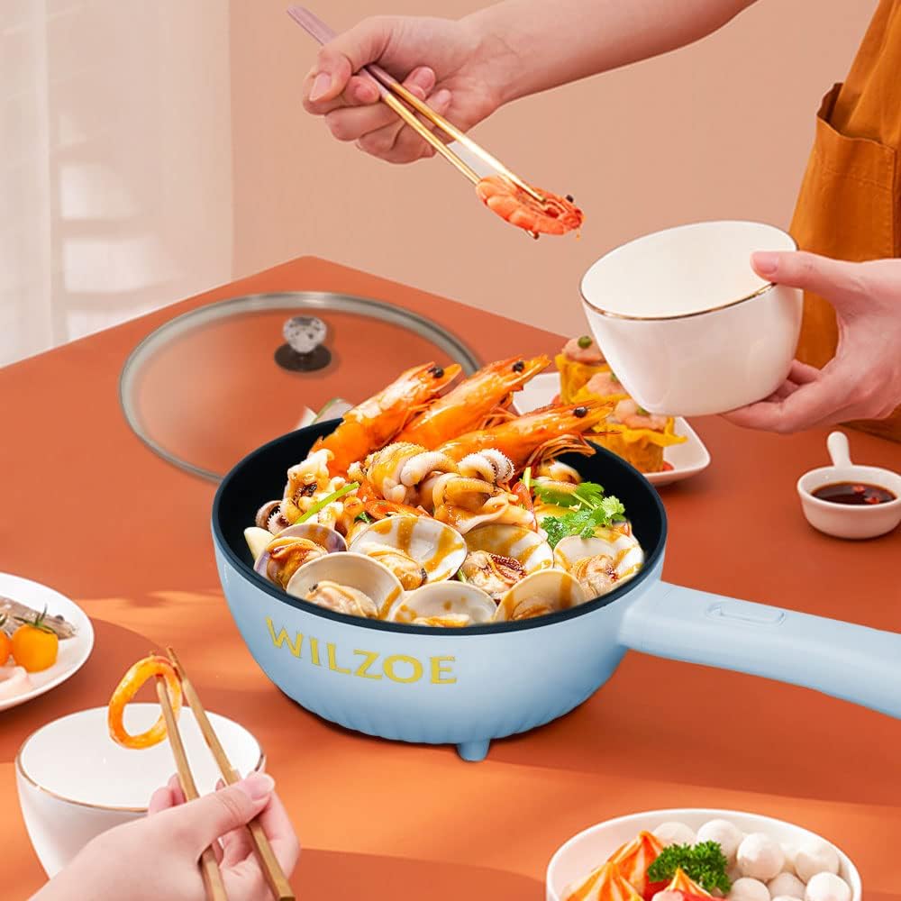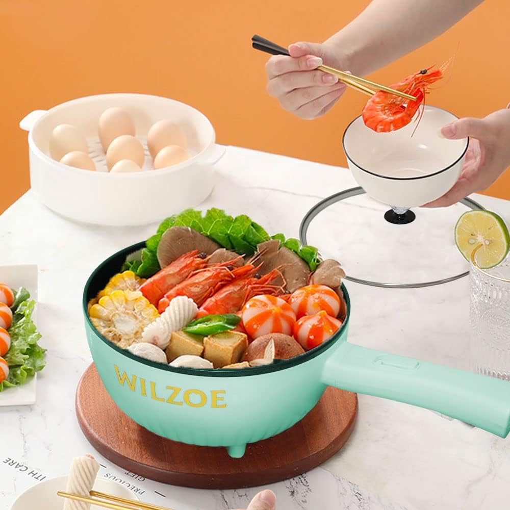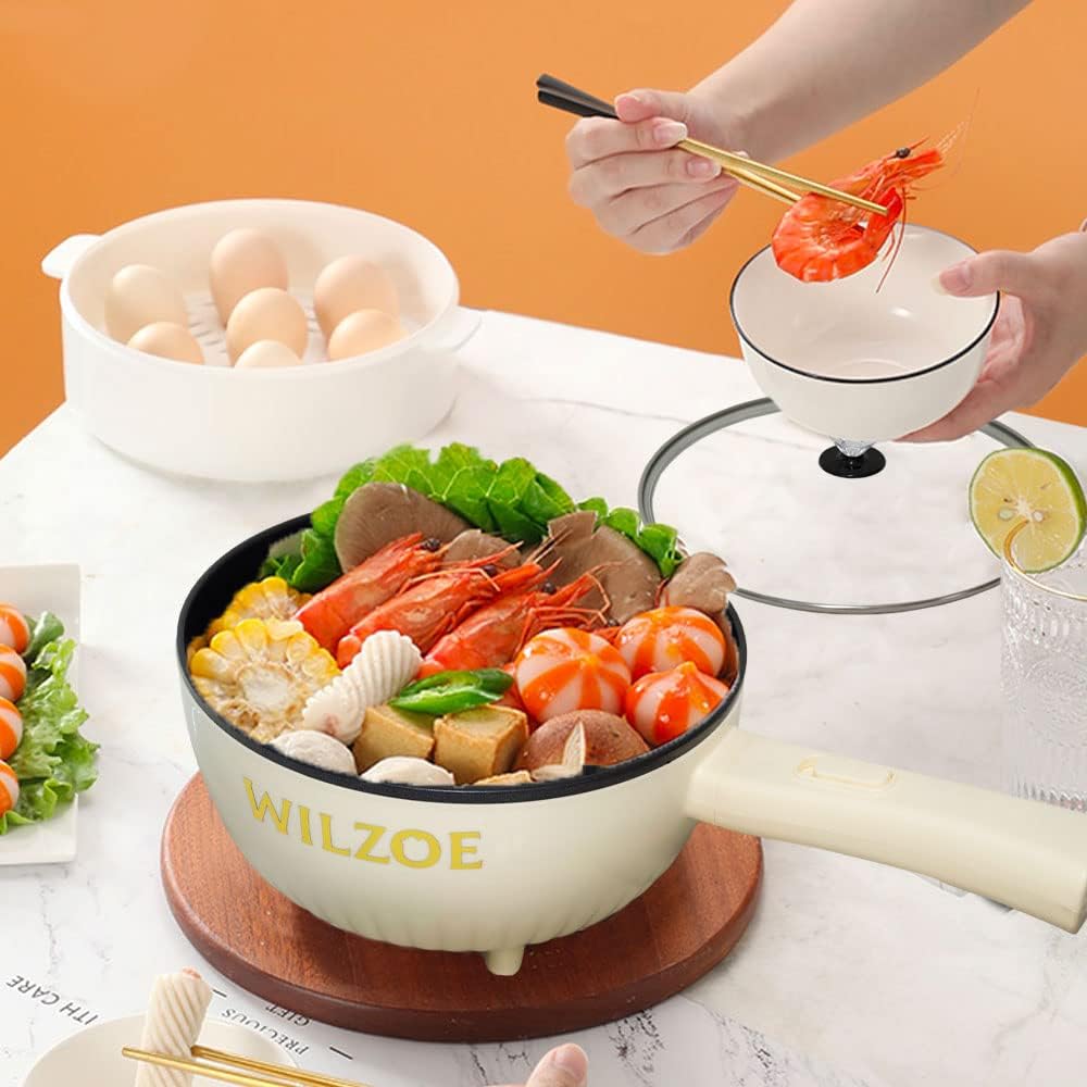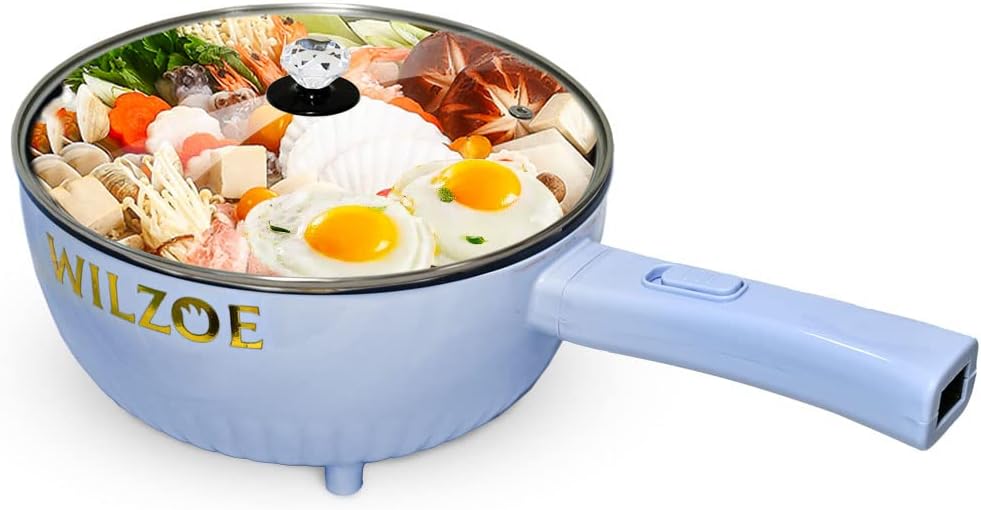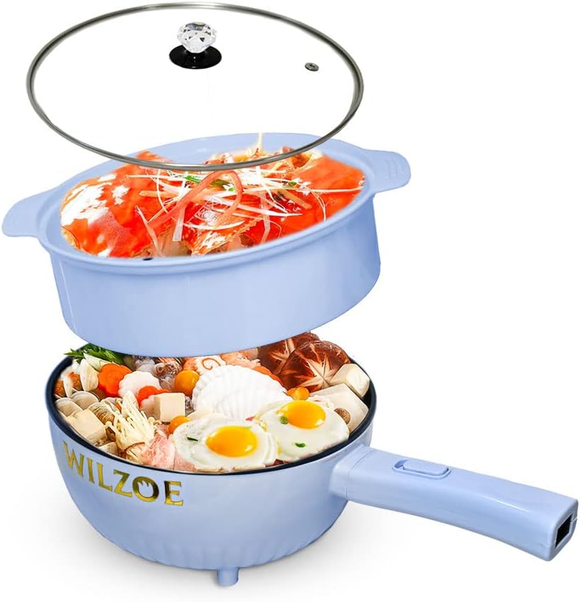 Wilzoe Electric Hot Pot 2.8L,1000W Non-Stick Frying Pan,Rapid Noodles Cooker,Electric Cooking Pot,Mini Hot Pot for Steak,Egg,Oatmeal,Soup,with Power Adjustment, (Food Steamer Included),Purple