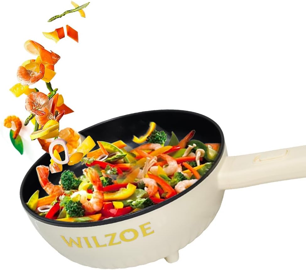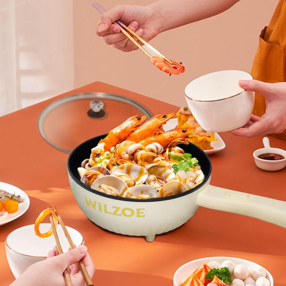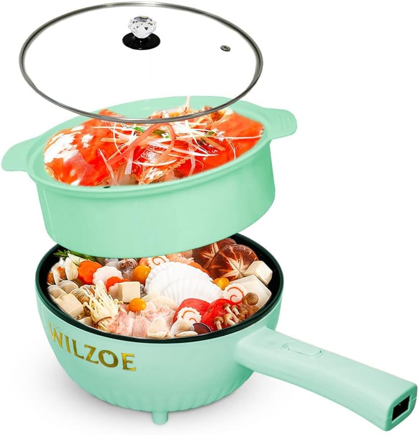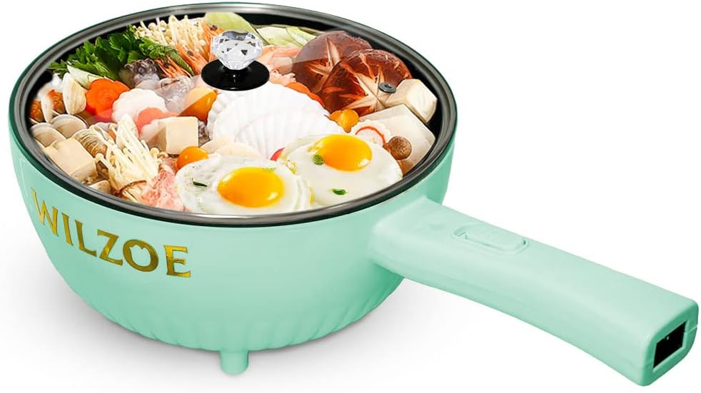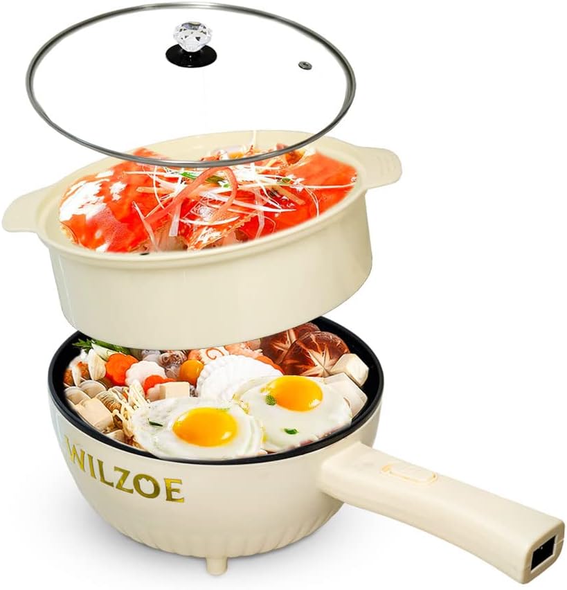 Wilzoe Electric Hot Pot 2.8L,1000W Non-Stick Frying Pan,Rapid Noodles Cooker,Electric Cooking Pot,Mini Hot Pot for Steak,Egg,Oatmeal,Soup,with Power Adjustment, (Food Steamer Included),Purple