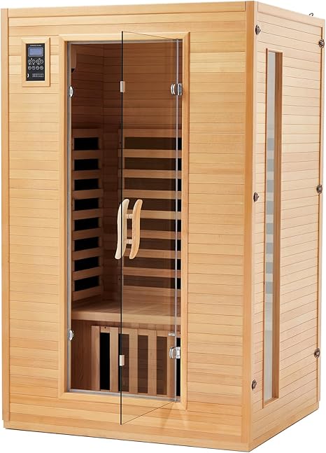 2024 Upgrade 2 Person Sauna, Low EMF 6 Heating Plate Infrared Physical Therapy Wooden Dry Steam Sauna with MP3 Auxiliary Connection, Dual Controls, Iron Shirt Wall Plate, Home Spa Day Use, Gift