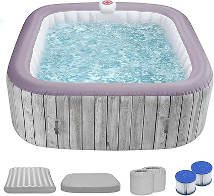 73" Hot Tub Inflatable with 130 Air Jets, Square Hot Tub for 4-6 Person, Outdoor Spa with Built-in Fastfill Inflation System, Insulation Lid for Patio, Deck Use