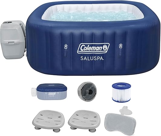 Bestway Coleman Hawaii AirJet Inflatable Hot Tub with EnergySense Cover, Blue + Bestway SaluSpa Spa Seat (2 Pack) + Bestway SaluSpa Pillows