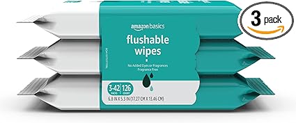Amazon Basics Adult Wet Wipes Flushable Fragrance Free, 126 Count (3 Packs of 42) Packaging May Vary