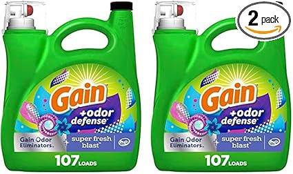 Gain + Odor Defense Liquid Laundry Detergent Super Fresh Blast Scent 154 fl oz 107 Loads HE Compatible (Pack of 2)