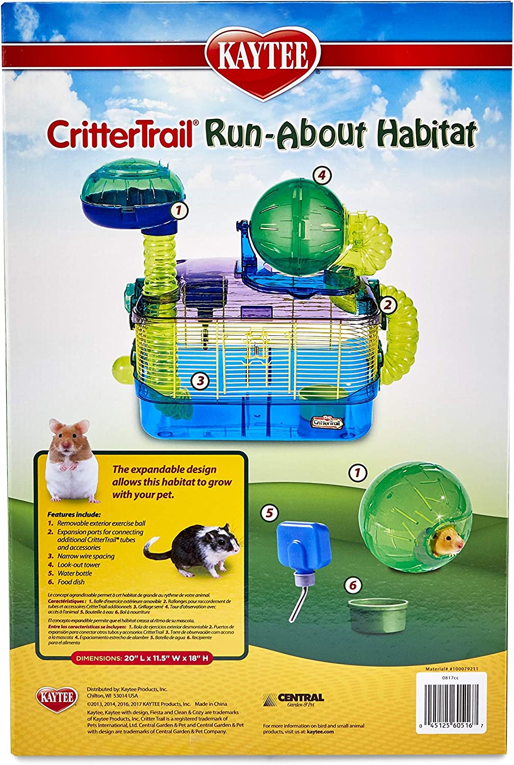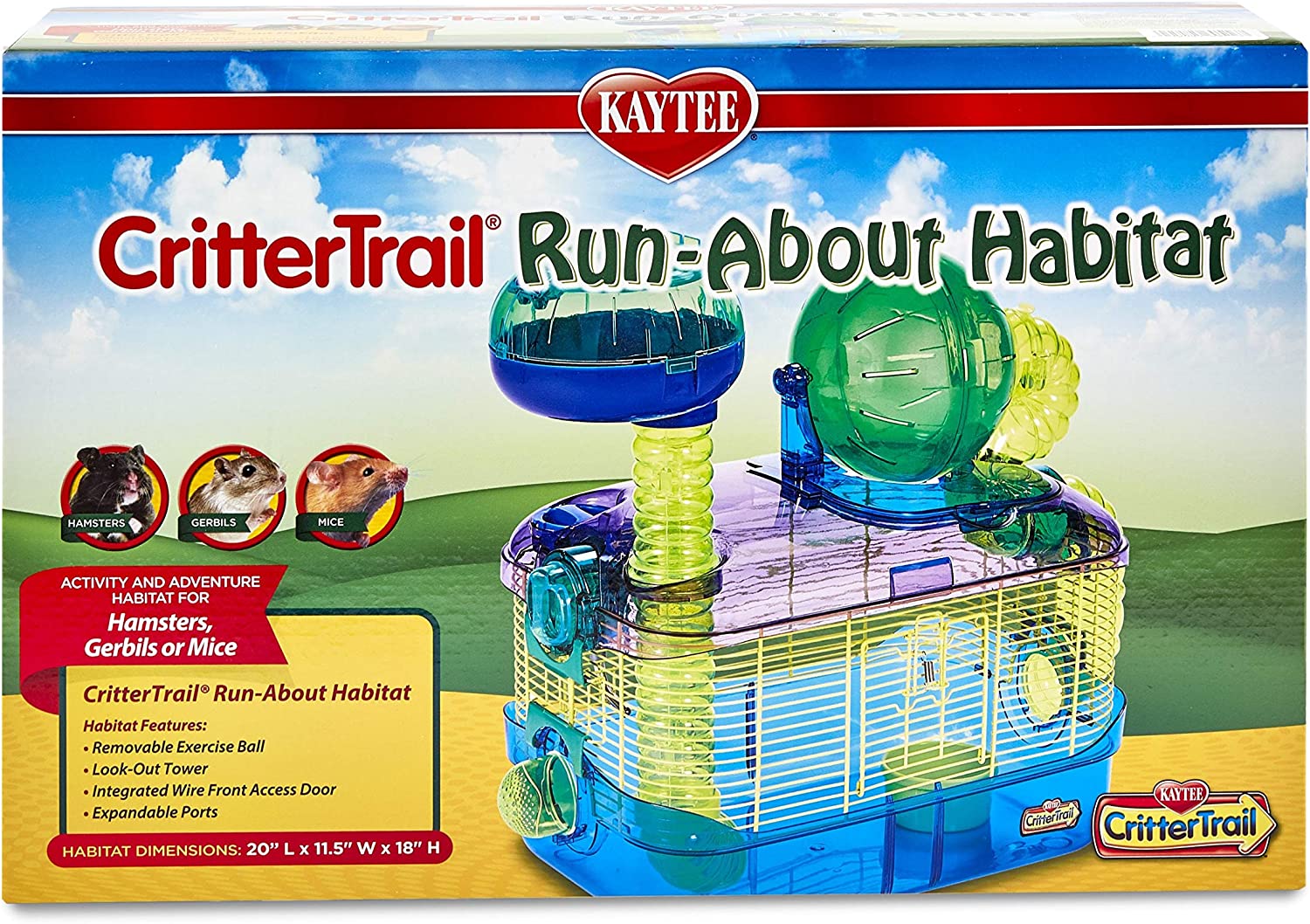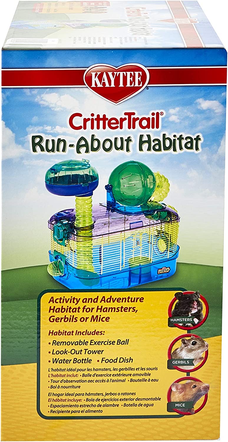 This complete habitat features a removable exterior ball to provide your furry friend with hours of fun activity both in and out of the cage! The habitat also features Look-Out Tower which provides a nesting spot and easy interaction with your pet. The Run-about Habitat also comes with a food dish and water bottle for your convenience. Front wire door allows you to easily access your pet at any time. Ideal for mice, dwarf hamsters, hamsters and gerbils.