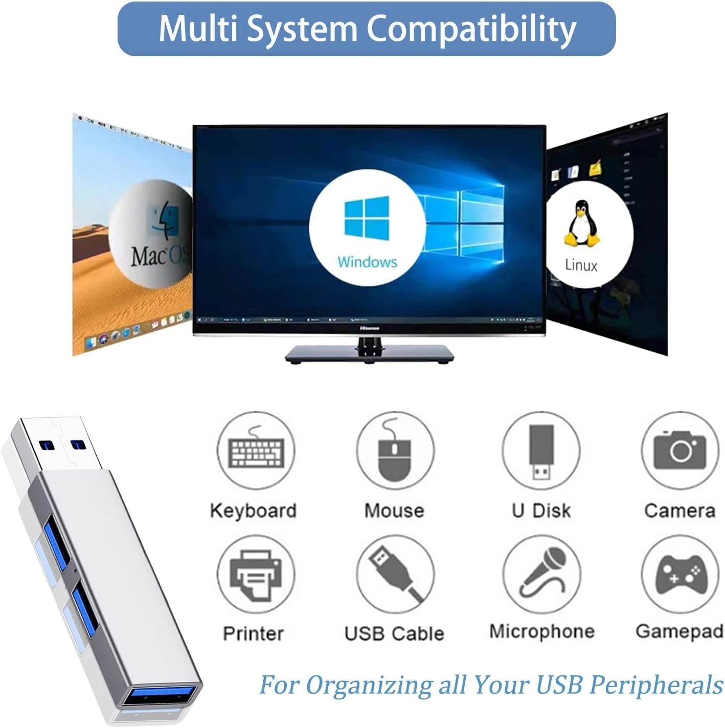 • 【SuperSpeed Transmission】:With high efficient USB3.0,this 3-port USB hub provides 5 Gbps stable data transfer and is compatible with 2.0/1.0. It is fast enough to transfer an HD movie in seconds.