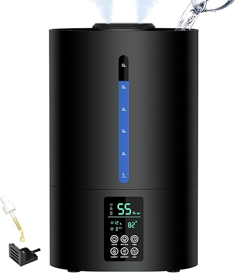 6L Humidifiers for Bedroom Large Room Home, Cool and Warm Humidifiers for Baby and Plants Mist Top Fill Desk Humidifiers Essential Oil Diffuser, Quiet Humidifiers with Adjustable Mist, 360‘�Nozzle-Black