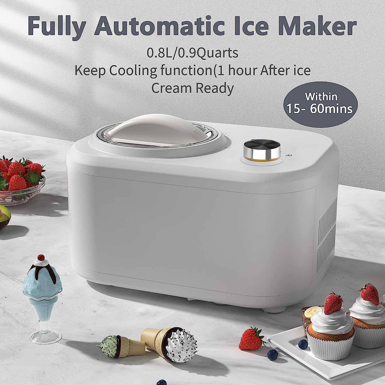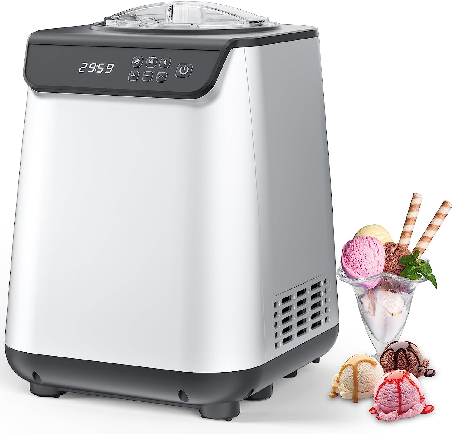 COWSAR Fully Automatic Ice Cream Maker with Built-in Compressor,Fruit Yogurt Machine Pre-freezing is No Needed,Removable Ice Cream Bowl, Easy Clean (CH-IC3908-1)
