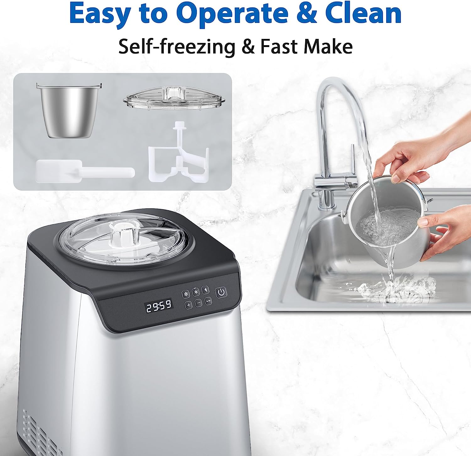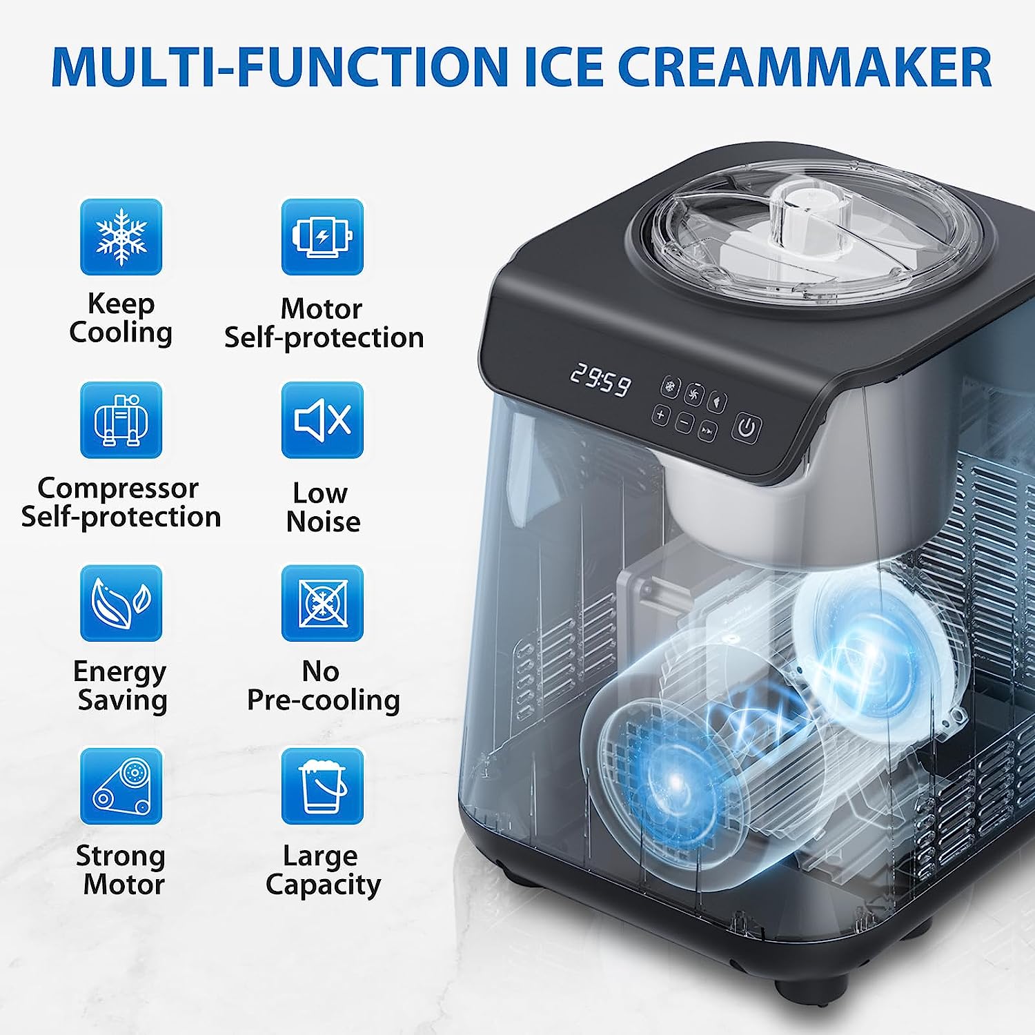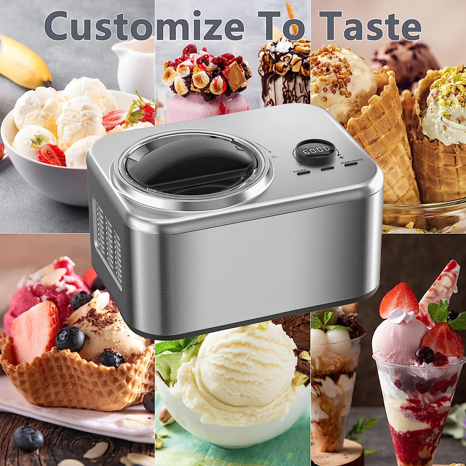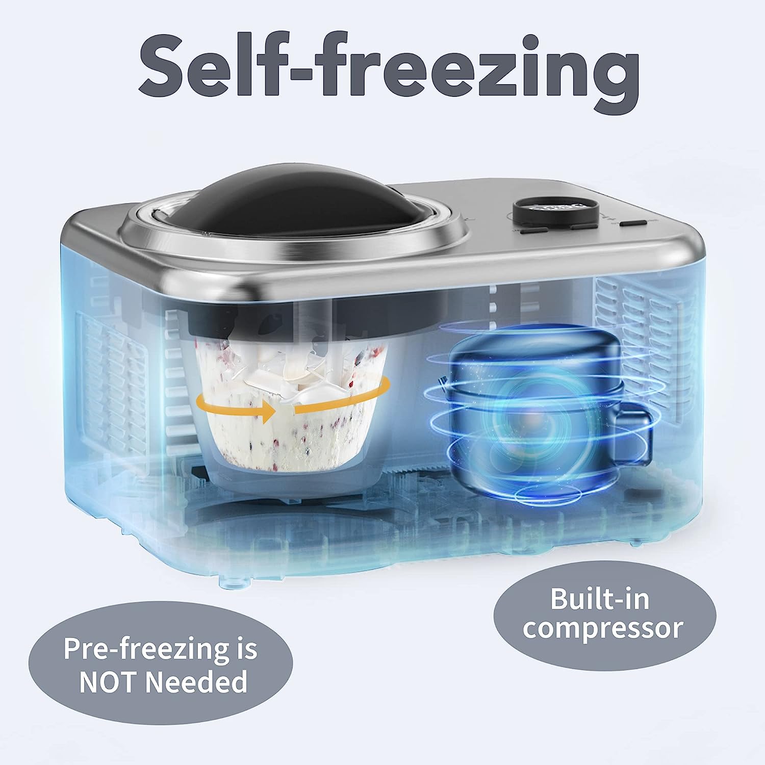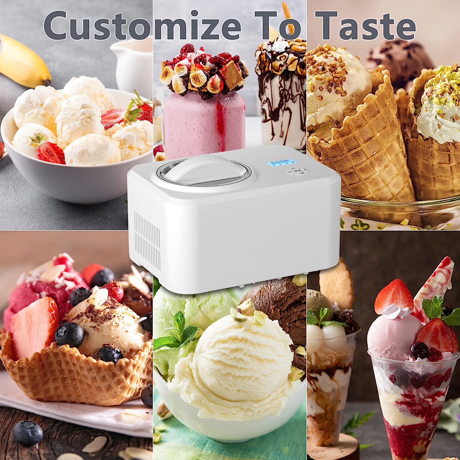 • ?Full automatic ice cream machine and yogurt machine: powerful built-in compressor freezer can be used continuously without pre freezing