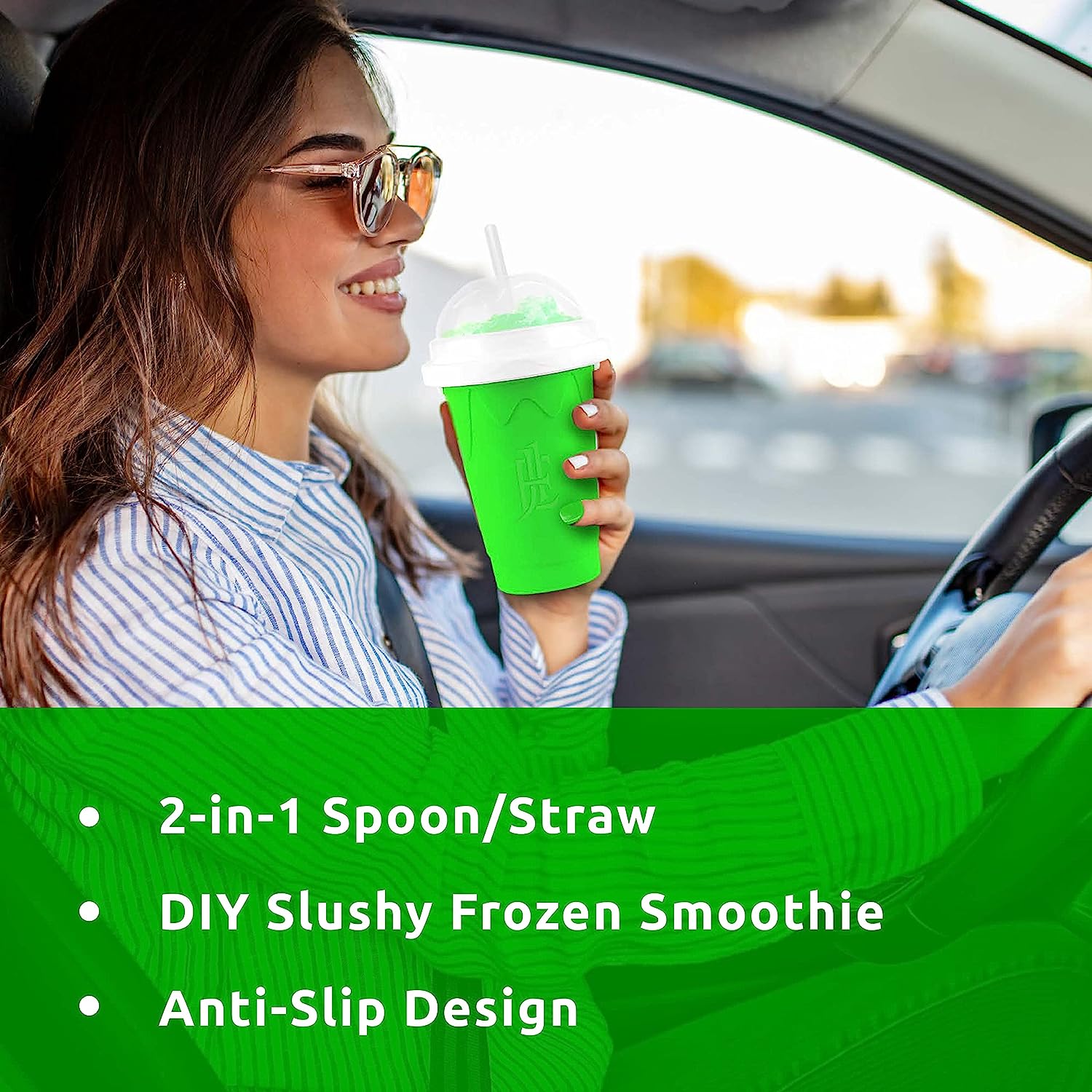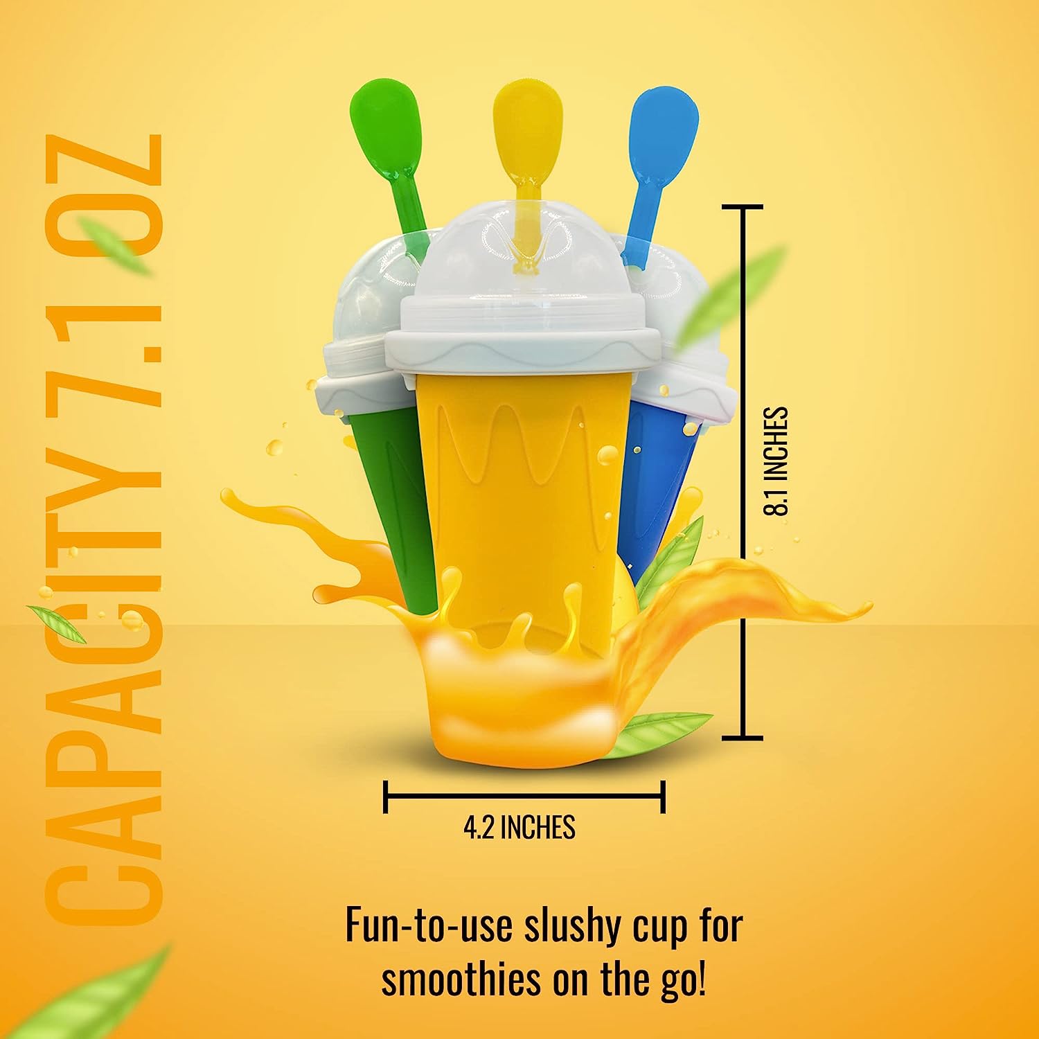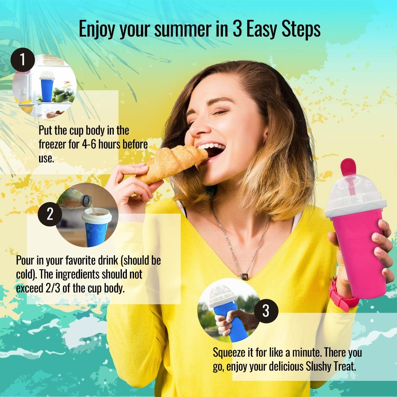 • Quick Freeze Technology : Beat the heat with EJ1 slushie cup. It has built-in freezing liquid, which transforms your favorite drinks into refreshing slushy. The inner layer of slushie maker cup exchanges heat with the ingredients poured-in creating quick delicious slushies. With the advanced technology used in this cool stuff frozen magic squeeze cup, your slush retains its original flavors without using any additional ice to achieve that semi-frozen consistency.